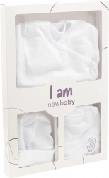Táto novorodenecká súprava NEW BABY I AM je navrhnutá s ohľadom na citlivú pokožku bábätiek. Jemná a priedušná bavlna poskytuje celodenné pohodlie, zatiaľ čo praktické detaily uľahčia každodenné prebaľovanie a obliekanie. Neutrálnu bielu farbu a čistý dizajn využijú dievčatká aj chlapčekovia.