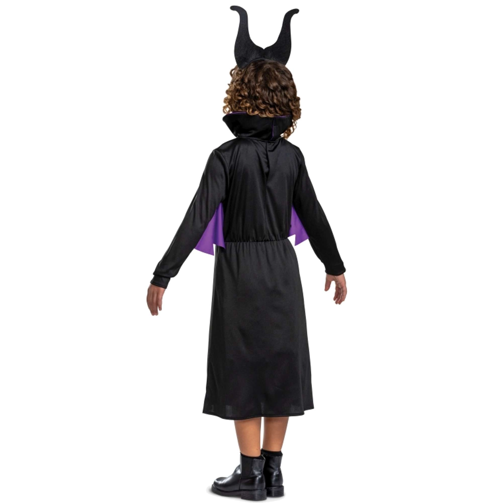 Originálny licencovaný kostým Maleficent prináša dramatický vzhľad ikonickej čarodejnice zo sveta DISNEY. Čierno‑fialová kombinácia, výrazný stojáčik a krídelkové panely vytvárajú efektnú siluetu, ktorá zaujme na prvý pohľad. Súčasťou je aj čelenka s rohmi, vďaka ktorej je premena kompletná.