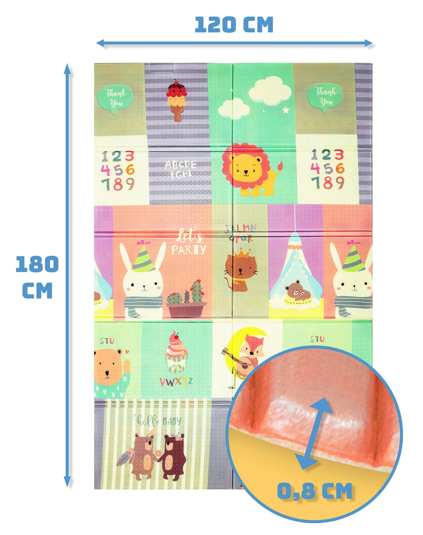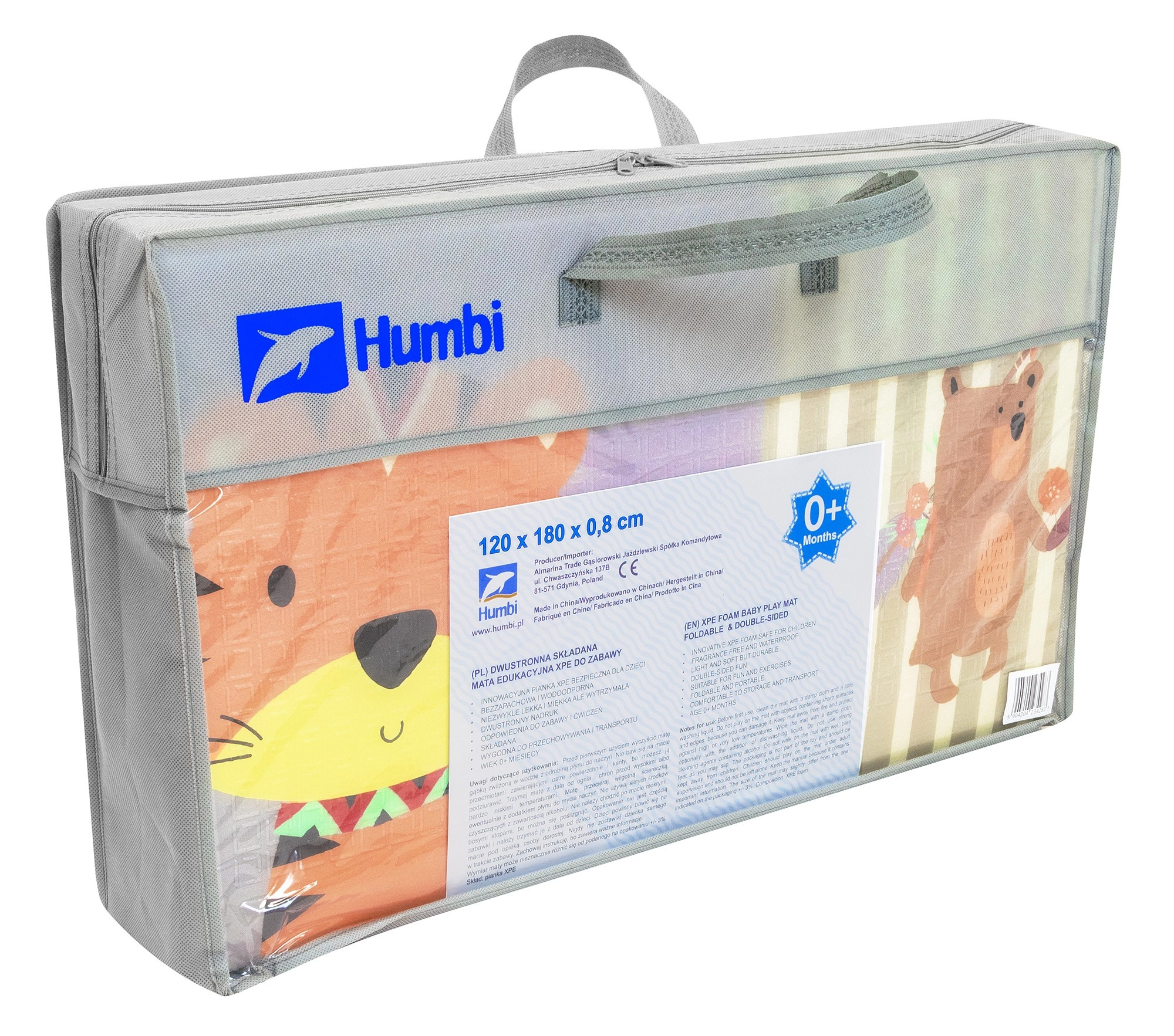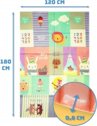 Hracia podložka HUMBI z kvalitnej peny XPE je ideálna do detskej izby, obývačky aj na záhradu. Vďaka hrúbke 0,8 cm výborne izoluje chlad z podlahy a zároveň tlmí nárazy pri pádoch. Obojstranný dizajn ponúka na jednej strane roztomilé zvieratká v pastelových farbách a na druhej strane farebné uličky – skvelé na zábavu aj rozvoj zmyslov.