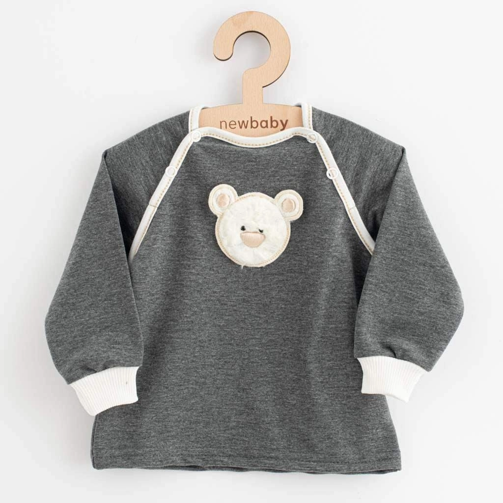 Objavte praktickú a pohodlnú súpravu pre chlapcov New Baby Sebastian v neutrálnej sivej farbe. Mikinka s roztomilým motívom medvedíka má ľahké zapínanie na cvočky pri ramene, takže prezliekanie je rýchle a šetrné k citlivej pokožke bábätka. Tepláčky majú širšie lemy v páse aj na nohaviciach pre pohodlné nosenie bez tlačenia.