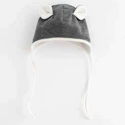 Praktická jarná 2-dielna sada NEW BABY Sebastian – mäkká čiapočka s podšívkou a nastaviteľná šatka na krk v elegantnej sivej. Perfektne kryje ušká, zaväzovanie na šnúrky zabezpečuje stabilitu a príjemná bavlnená zmes s elastanom sa postará o komfort. Ideálna na jar aj jeseň, zdobená roztomilým medvedíkom.