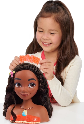 Štýlová hlava Moany (Vaiany) verne zachytáva obľúbenú hrdinku z animovaného filmu DISNEY. Vďaka dlhým, hustým a vlnitým vlasom je ideálna na každodennú hru na kaderníčku – od jednoduchého česania až po prepracované účesy s doplnkami.