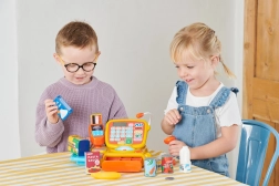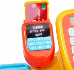 Ručný skener vydáva krátke pípnutie pri „načítaní“ tovaru a čítačka platobných kariet simuluje platbu. Deti si vyskúšajú oba najčastejšie spôsoby platenia v obchode.