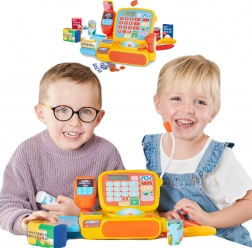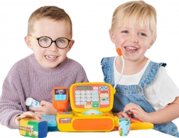 Prehľadná klávesnica s funkciami kalkulačky a kategóriami tovaru uľahčuje sčítanie nákupu a precvičuje počítanie aj logické myslenie.