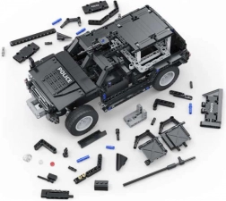 Stavebnica zo série CADA Make Your Bricks Move je skvelá pre všetkých, ktorí milujú technické výzvy a dynamickú hru. Vďaka detailnej konštrukcii, funkčným prvkom a ovládaniu na diaľku si užijete realistickú jazdu aj atraktívne vystavenie modelu. Čierne prevedenie so sivými akcentmi a výraznými nápismi POLICE podčiarkuje robustný vzhľad SUV.