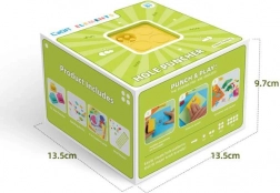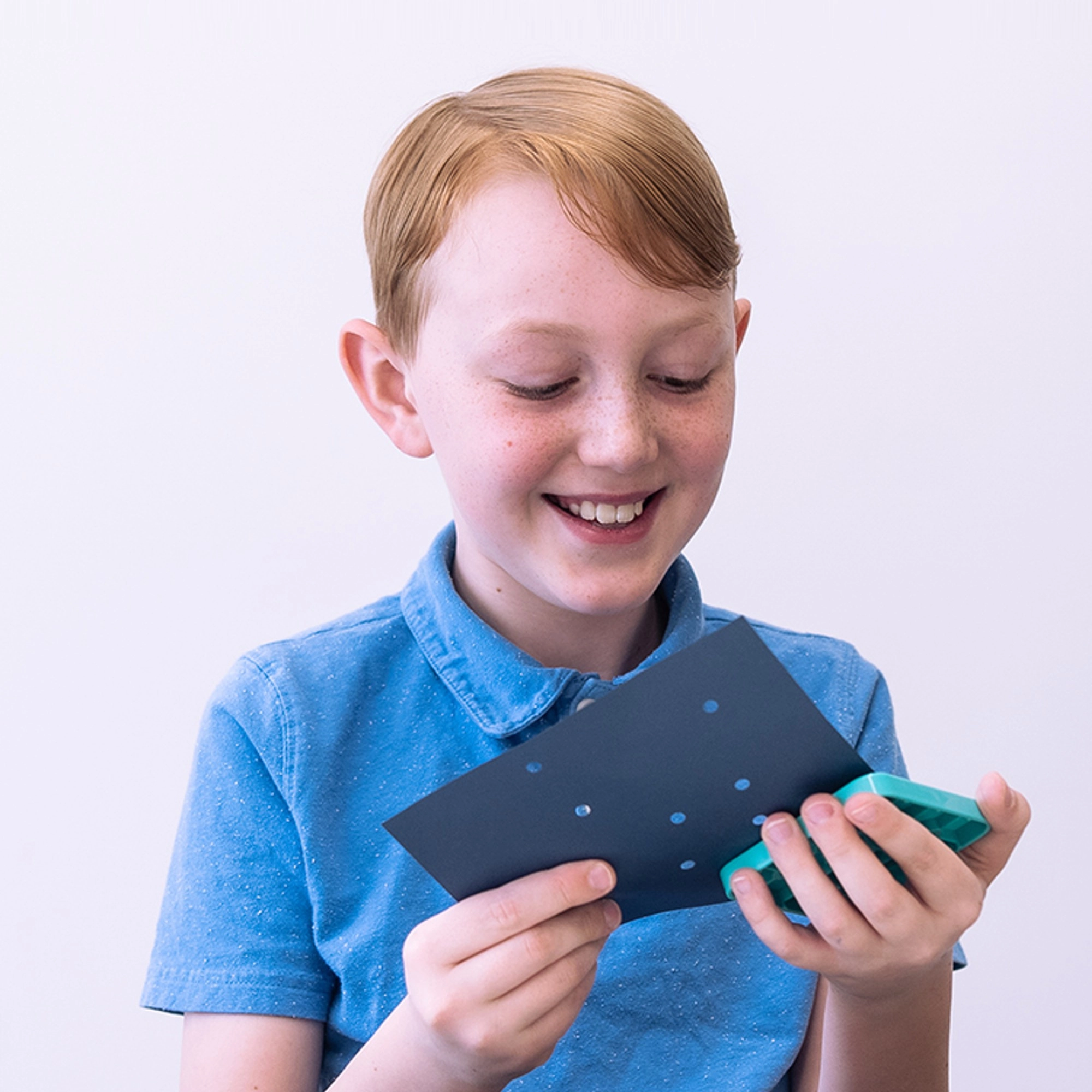 V balení nájdete dierovač, 99 kociek, 2 šablóny a 6 kariet. Stačí dierovať, vyplniť otvory kockami a vytvoriť vlastný dizajn.