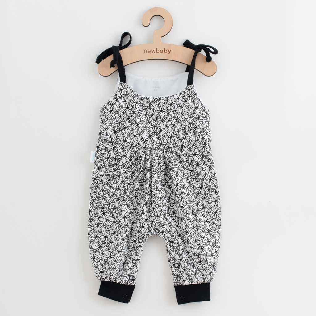 Ľahké bavlnené lacláče s celoplošnou kvetinovou potlačou majú zaväzovanie na ramienkach pre nastavenie dĺžky a širší pružný lem na nohavičkách pre pohodlie bez otlakov. Kvalitné spracovanie a precízne šitie zaisťujú dlhú životnosť aj pri častom praní.