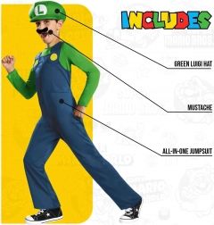 Premeňte sa behom chvíľky na obľúbeného hrdinu Luigiho zo sveta Super Mario. Tento oficiálne licencovaný kostým prináša pohodlné nosenie a autentický vzhľad, ktorý deti ocenia pri každej zábave aj školskom karnevale.