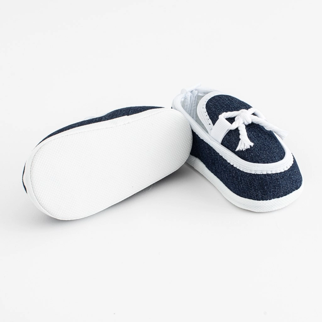 Tieto tmavomodré capačky v elegantnom štýle mokasín ponúknu bábätku pohodlie aj podporu prirodzeného vývoja nôžičiek. Vďaka širšej vnútornej časti majú prsty dostatok priestoru a topánočky pekne priliehajú k nohe, takže dobre držia. Ľahká konštrukcia s tenkou podrážkou napomáha vnímaniu povrchu a je vhodná na prvé hranie a plazenie.