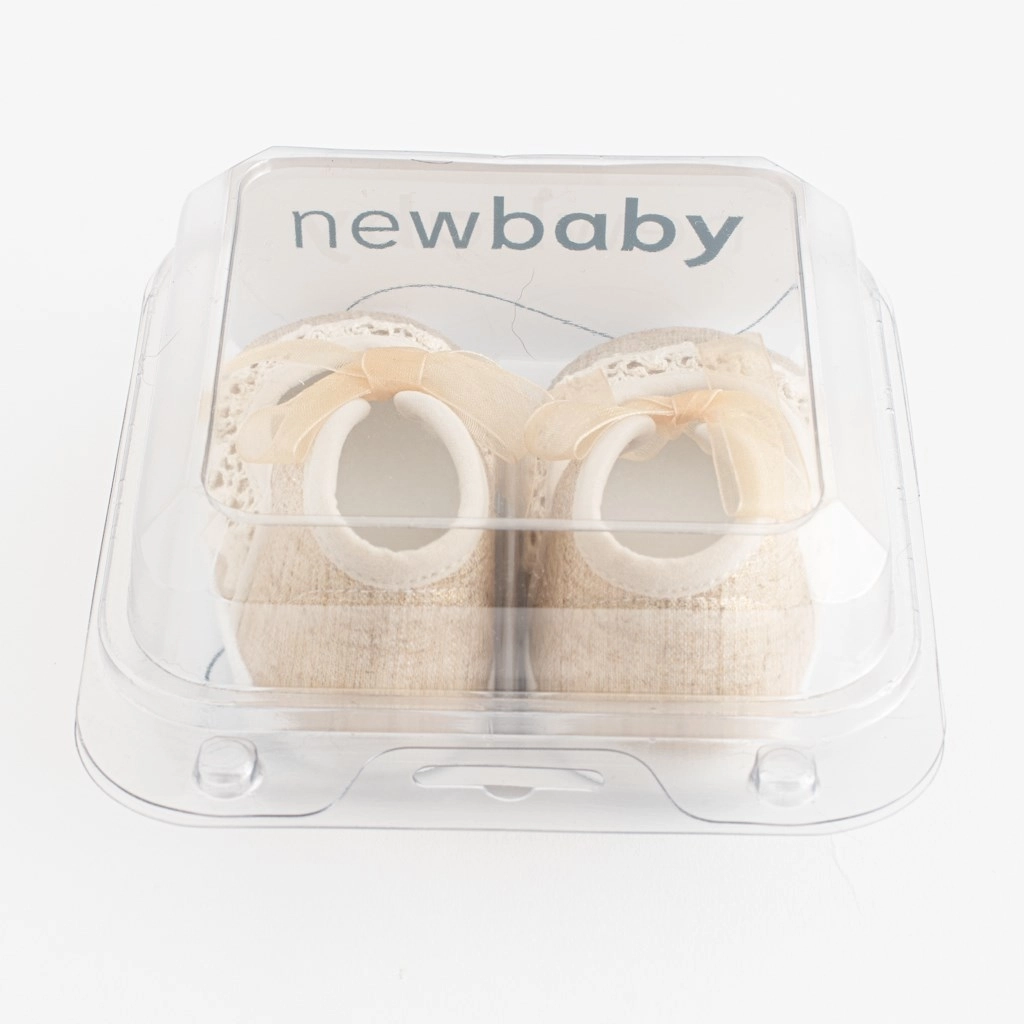 Capačky New Baby potešia jemným krajkovým vzhľadom a praktickým strihom, ktorý dobre prilieha k nožičke bábätka. Vďaka širokému vnútornému priestoru podporujú prirodzený pohyb prstov a svalov, čo je ideálne pre zdravý vývoj v prvých mesiacoch. Sú určené výhradne na nosenie a zahriatie – nie na chôdzu.