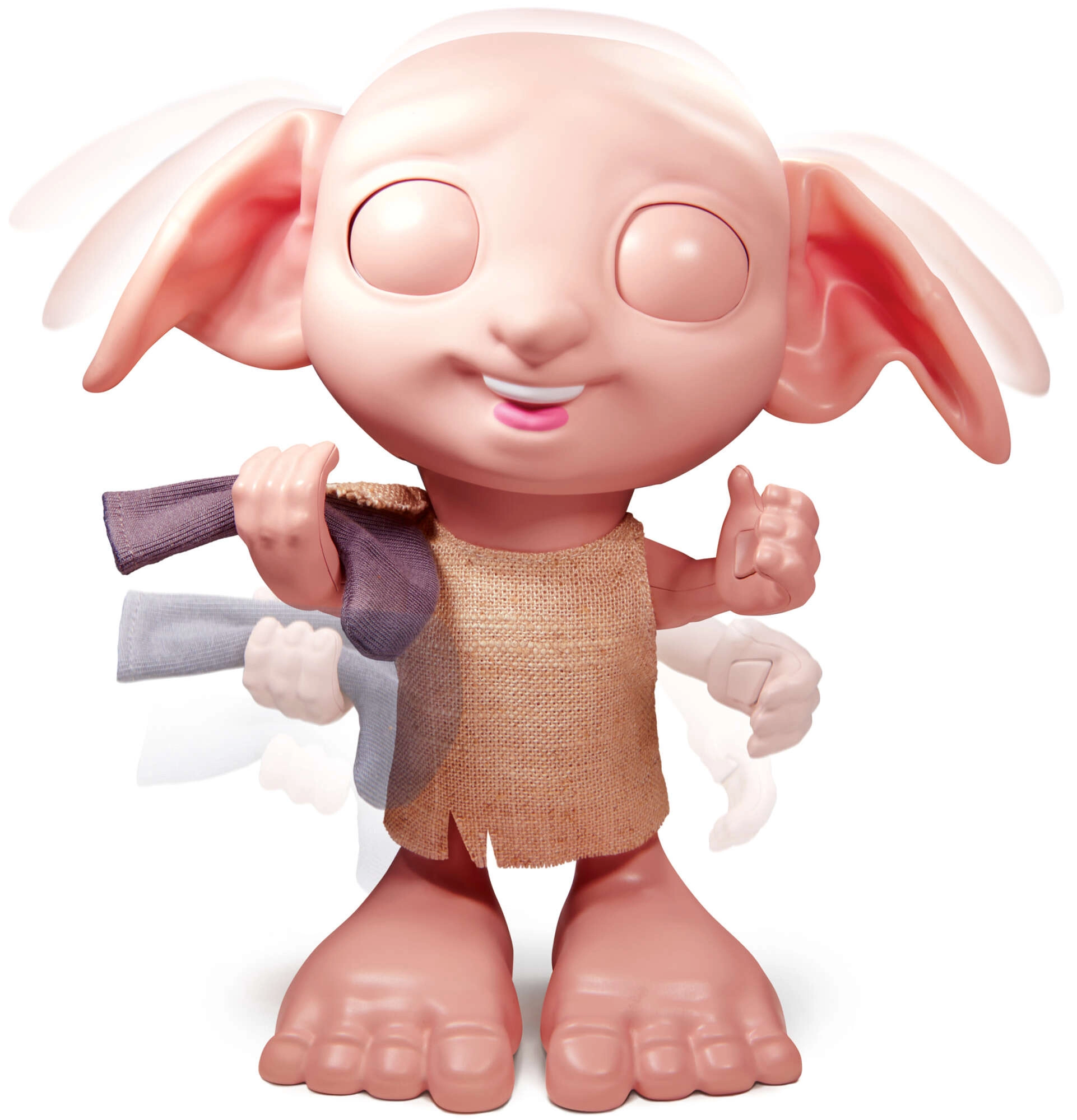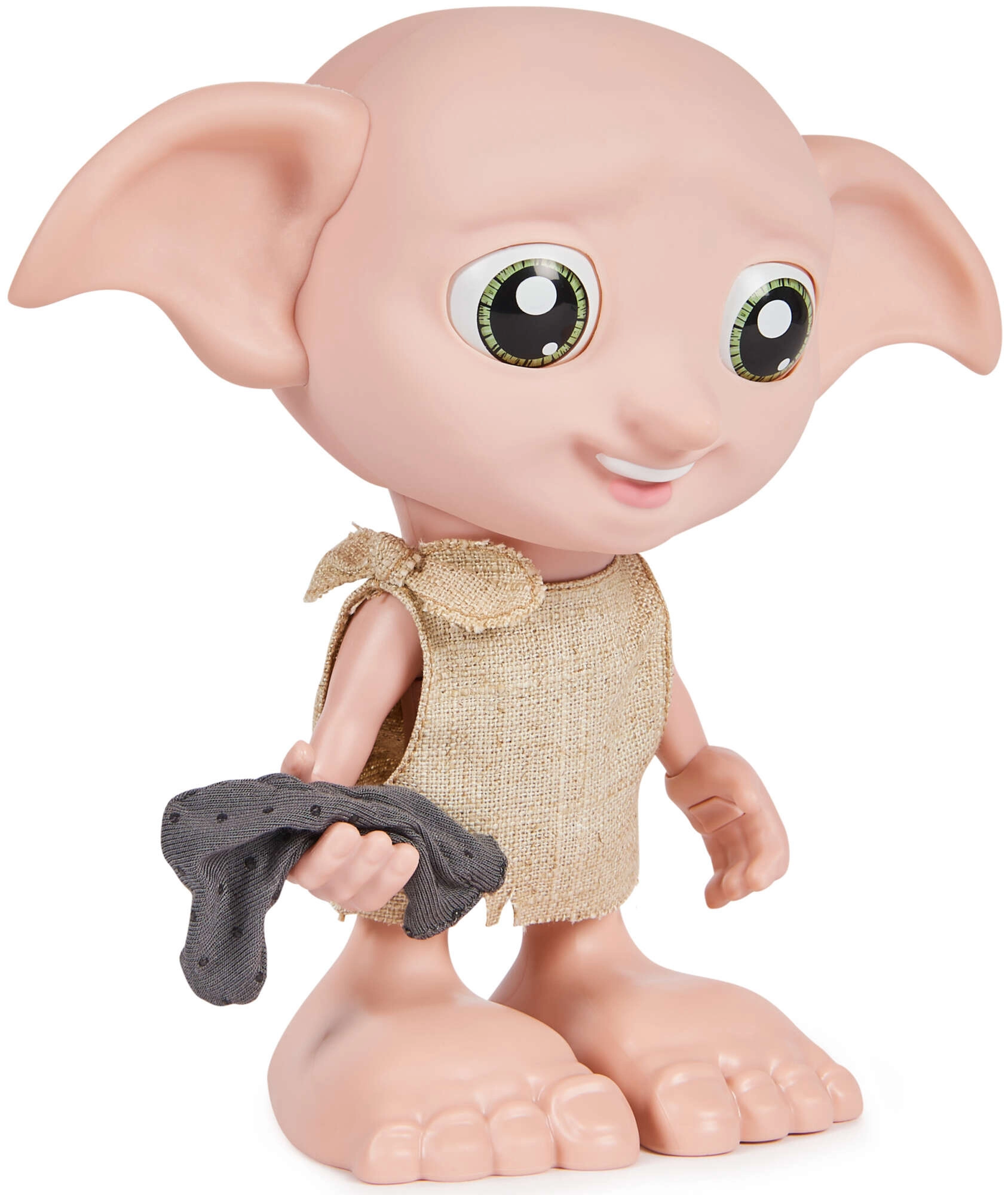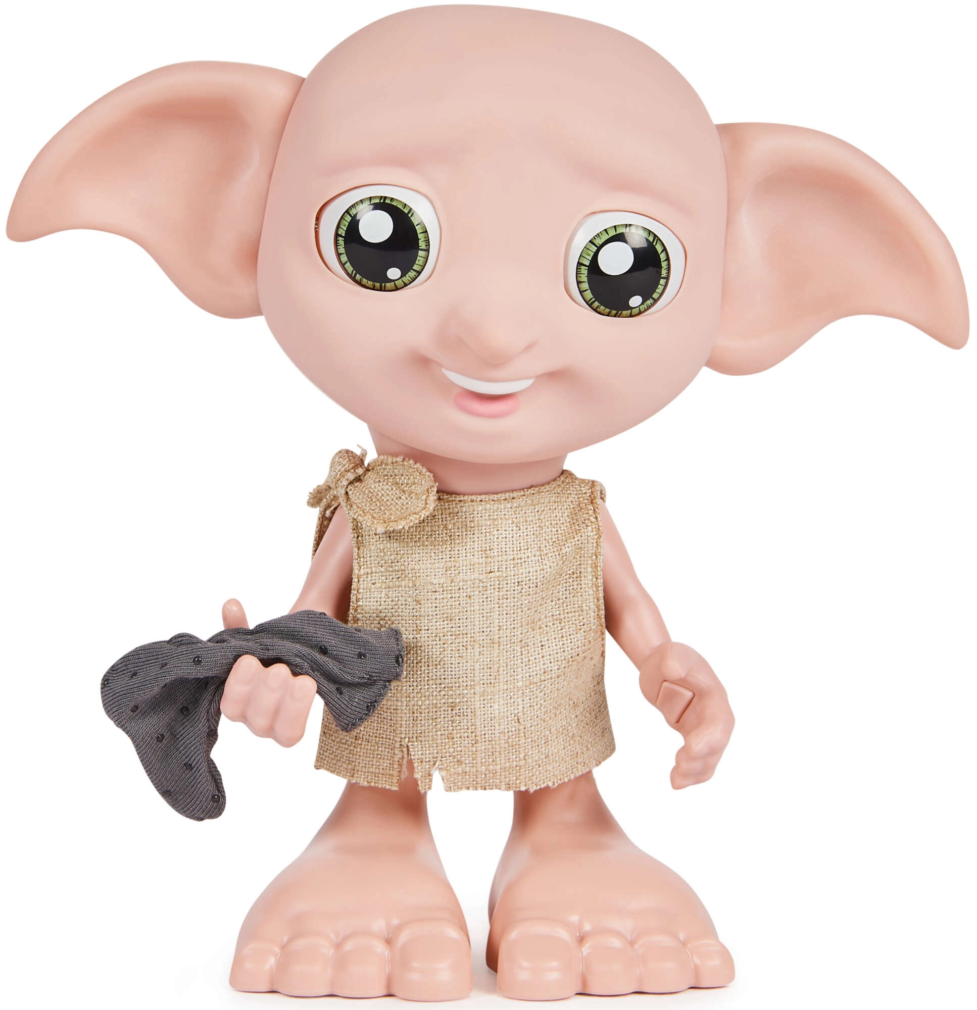 Interaktívna figúrka DOBBY verne zachytáva filmovú postavu – veľké zelené oči, výrazné uši a jednoduchú textilnú tuniku. Vďaka artikulovaným končatinám a tvári ju ľahko nastavíte do rôznych pozícií na hranie aj vystavenie. Jediným stlačením tlačidla na ľavej ruke spustíte 35 fráz a melódií z čarodejníckeho sveta.