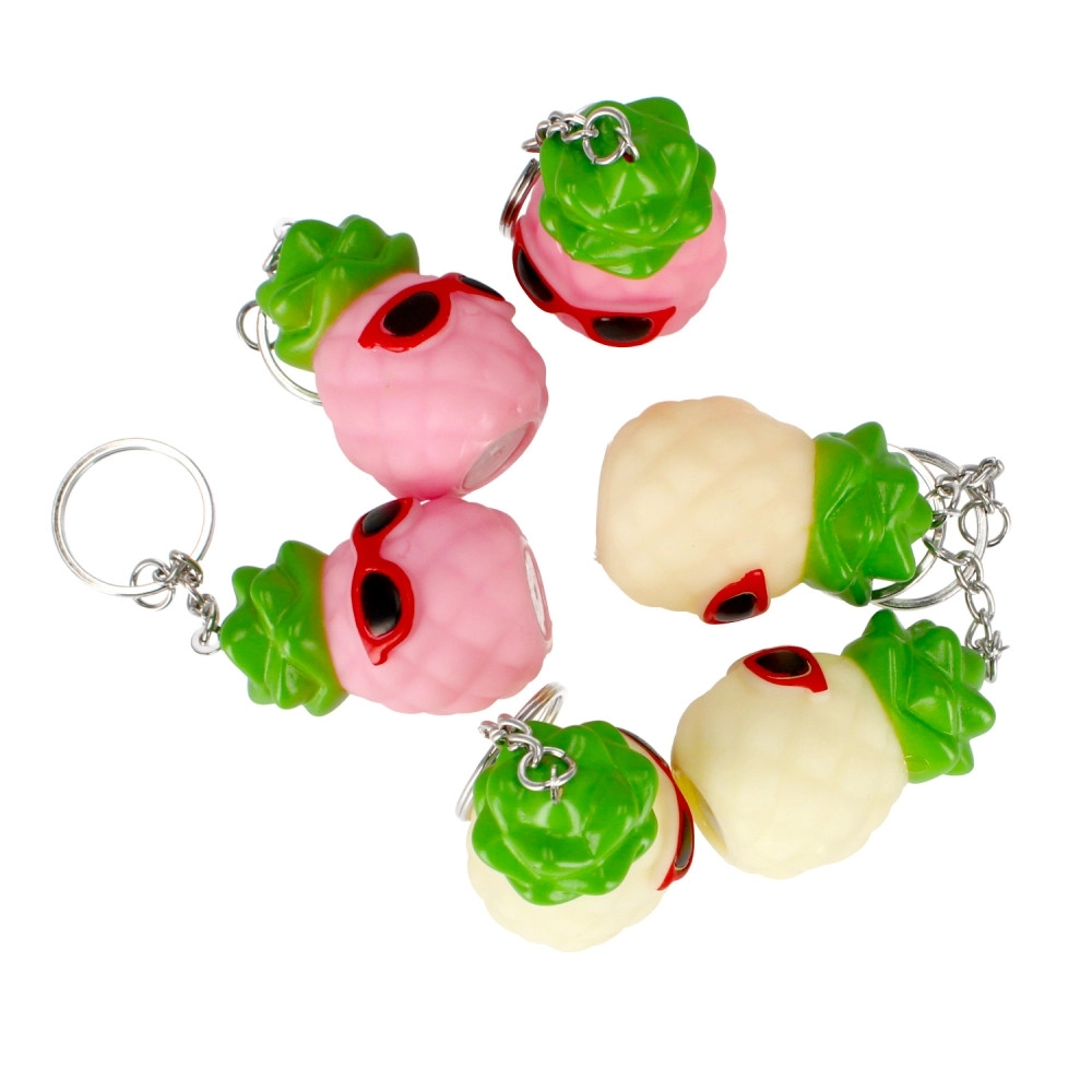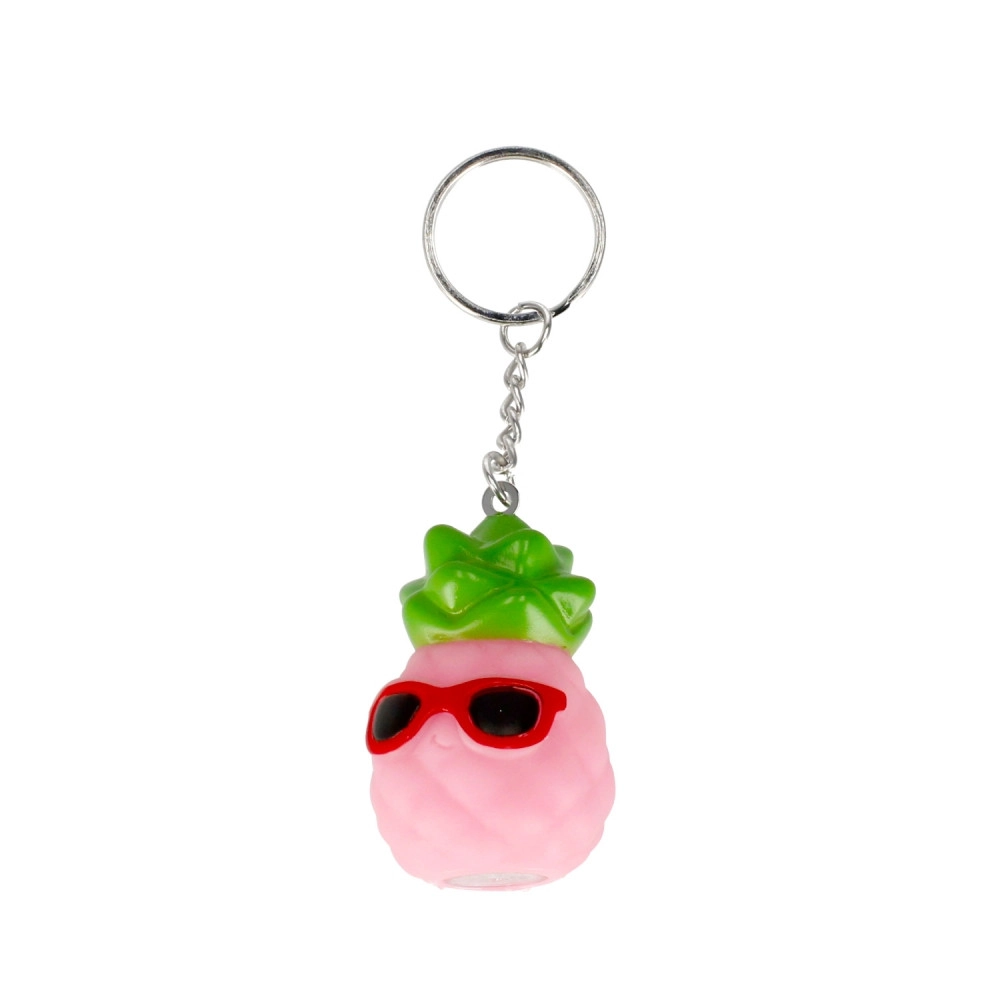 Roztomilý ananás s okuliarmi dodá vašim kľúčom osobitosť a zároveň ich vďaka červenému svetlu ľahšie nájdete aj v tme. Prívesok je ľahký, kompaktný a skvele sa hodí na kľúče, batoh aj peňaženku.