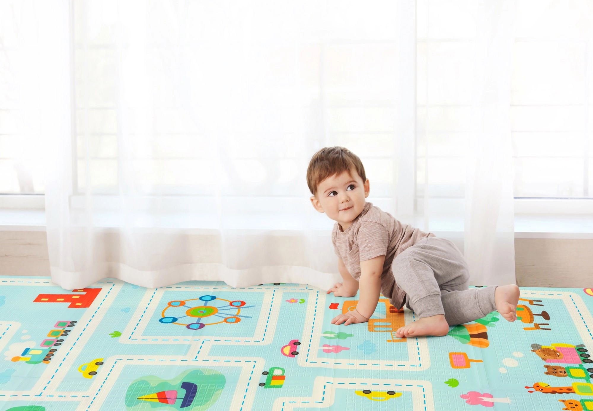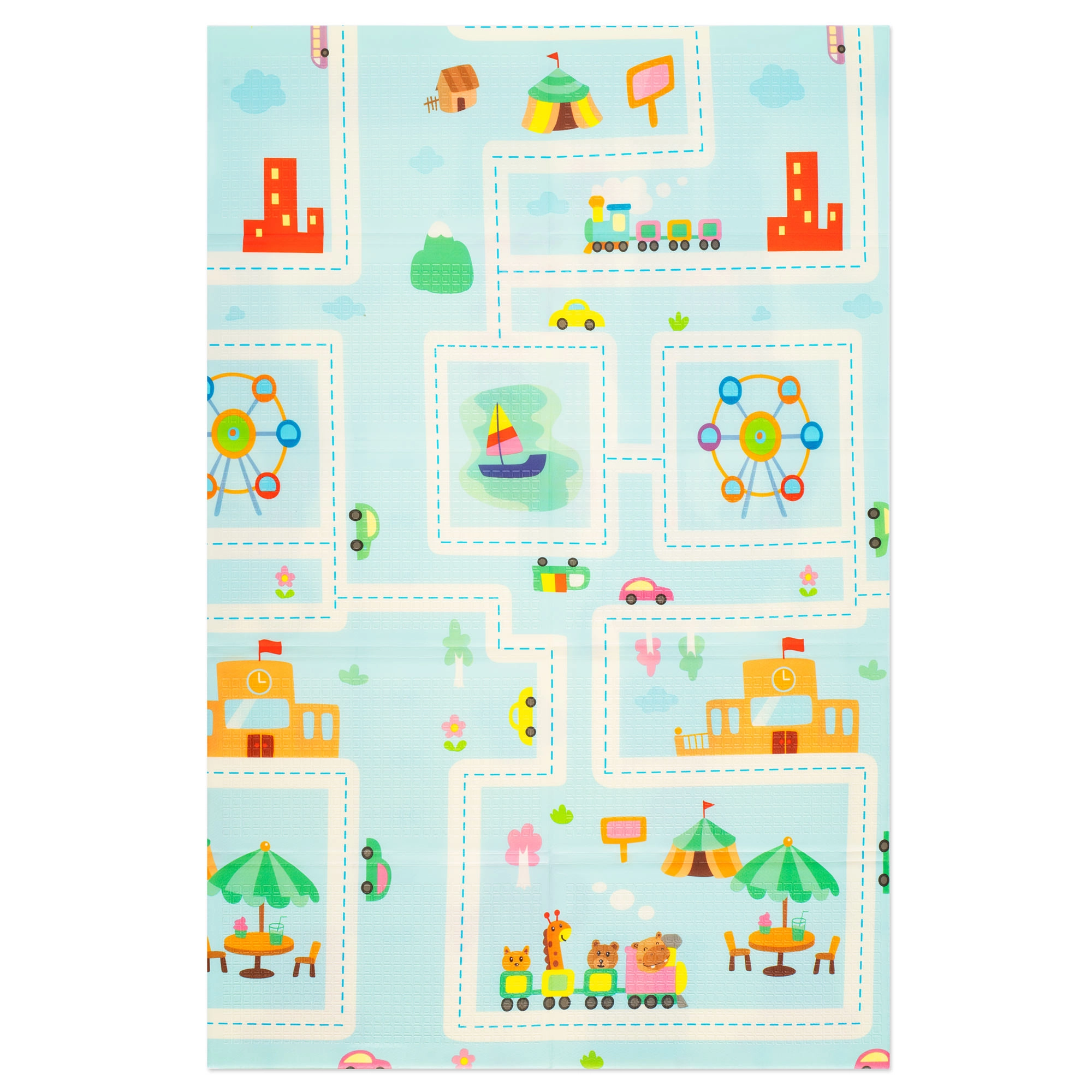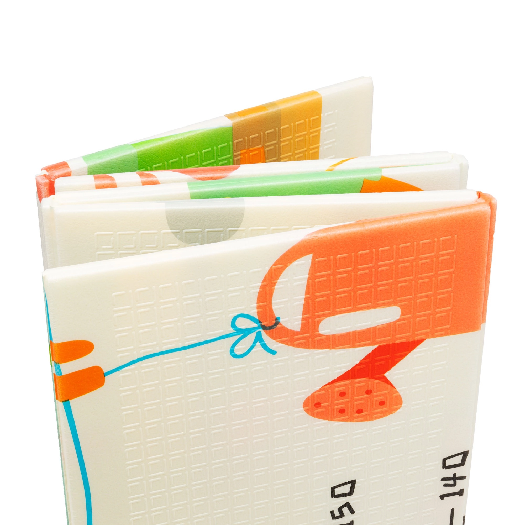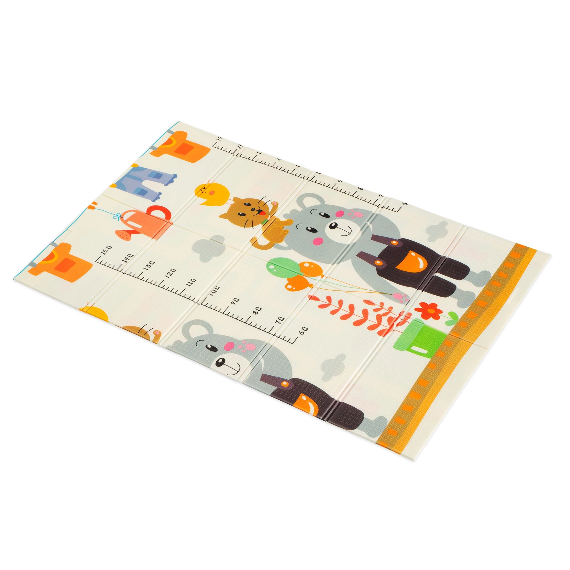 Obojstranný dizajn prináša dva edukatívne motívy: veselé zvieratká s výškovou mierkou na sledovanie rastu a farebné cesty s budovami a vozidlami na rozvoj fantázie. Podložku jednoducho zložíte počas pár sekúnd, ľahko ju uložíte a vďaka priloženej taške na zips vezmete kamkoľvek – do obývačky, detskej izby, na balkón, záhradu aj na cesty.