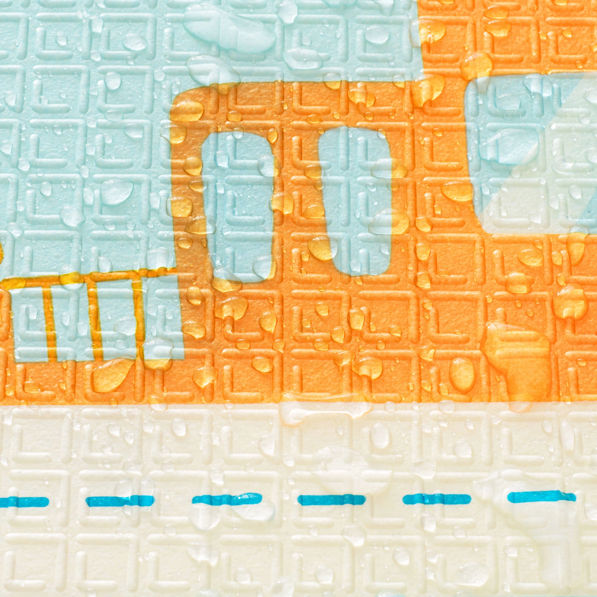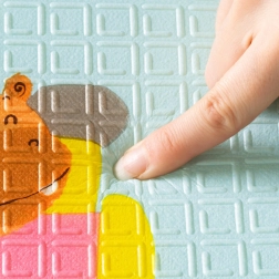 Silná, pružná a netoxická pena XPE výborne tlmí pády, izoluje chlad od podlahy a je bez zápachu. Povrch je vodoodolný a ľahko sa čistí.