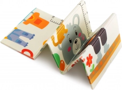 Jedna strana ponúka veselé zvieratkové motívy s výškovou mierkou, druhá strana farebné cesty a budovy na rozvoj fantázie a zmyslového vnímania.