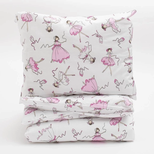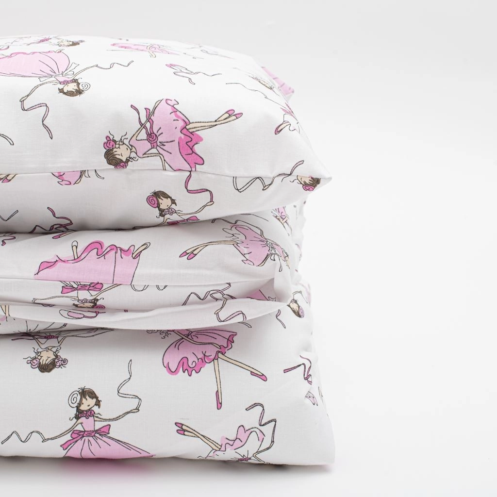Romantický motív baletky zútulní detskú izbičku a zaujme jemnými, upokojujúcimi farbami. Súprava je navrhnutá tak, aby nebledla a nefarbila oblečenie, takže si dlho udrží krásny vzhľad a funkčnosť.