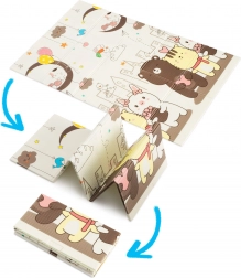 Podložka je skladacia do kompaktných sekcií – počas pár sekúnd ju rozložíte aj uložíte. Vodoodolný a ľahko umývateľný povrch stačí utrieť vlhkou handričkou, takže je ideálna aj pre alergikov: nezachytáva prach ani roztoče. Balenie obsahuje uzatvárateľnú tašku s ušami na pohodlné prenášanie doma, na záhrade, pikniku aj na cestách.