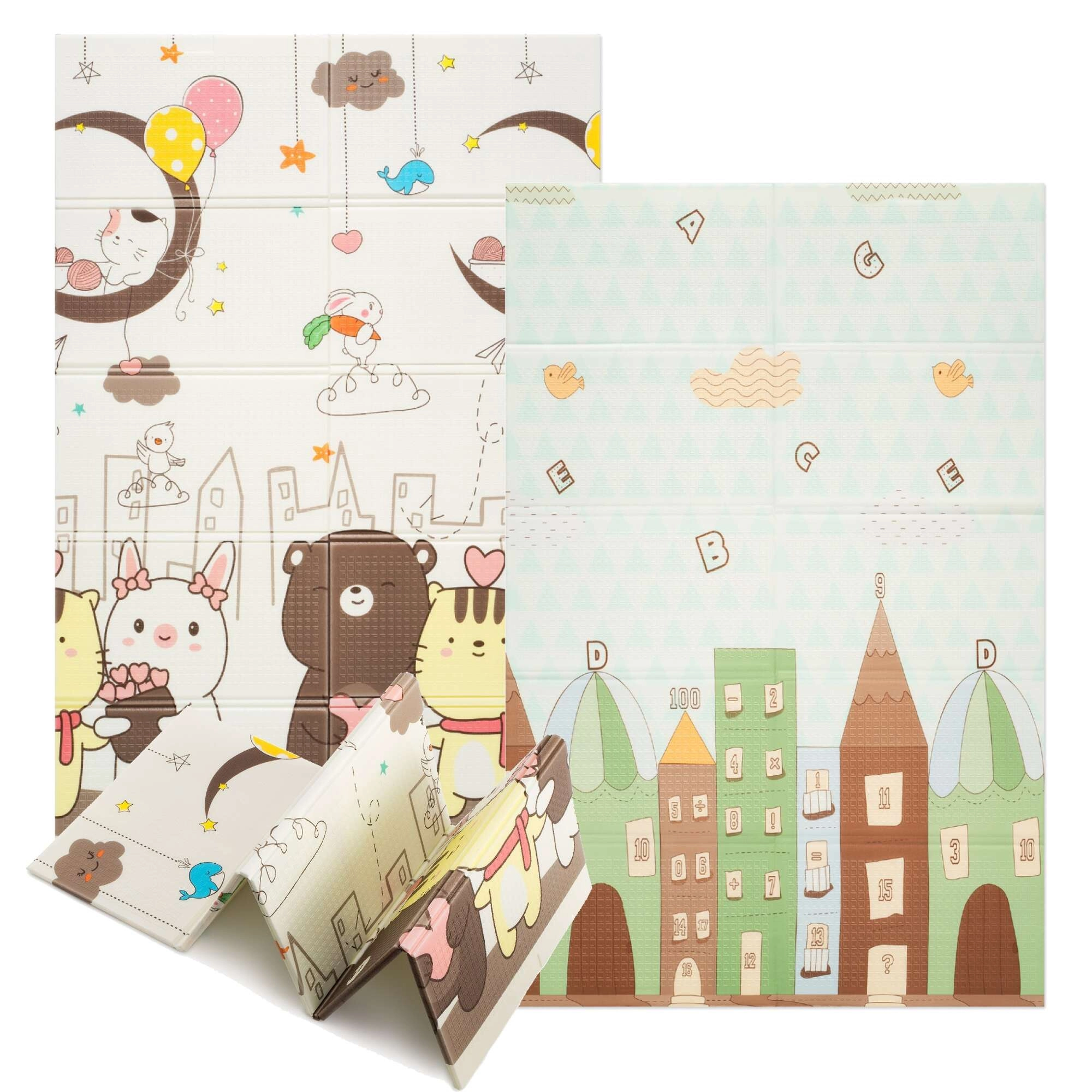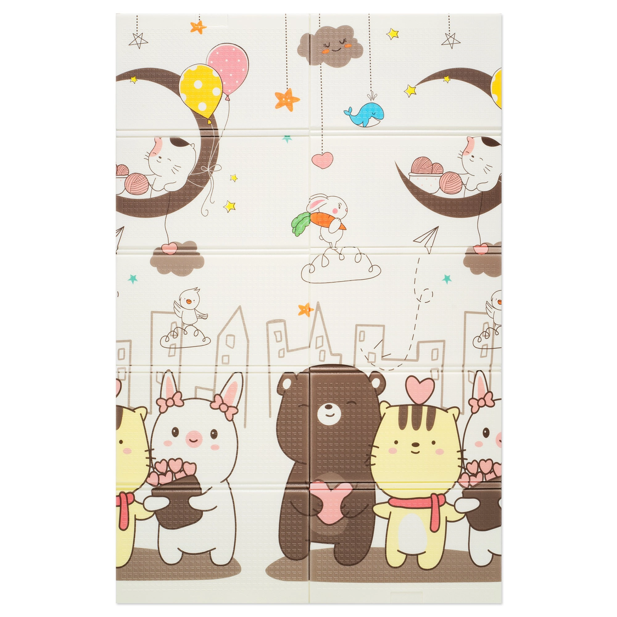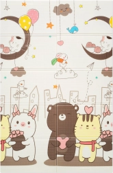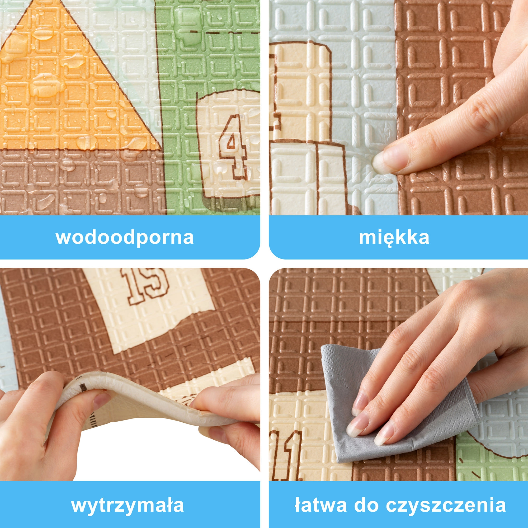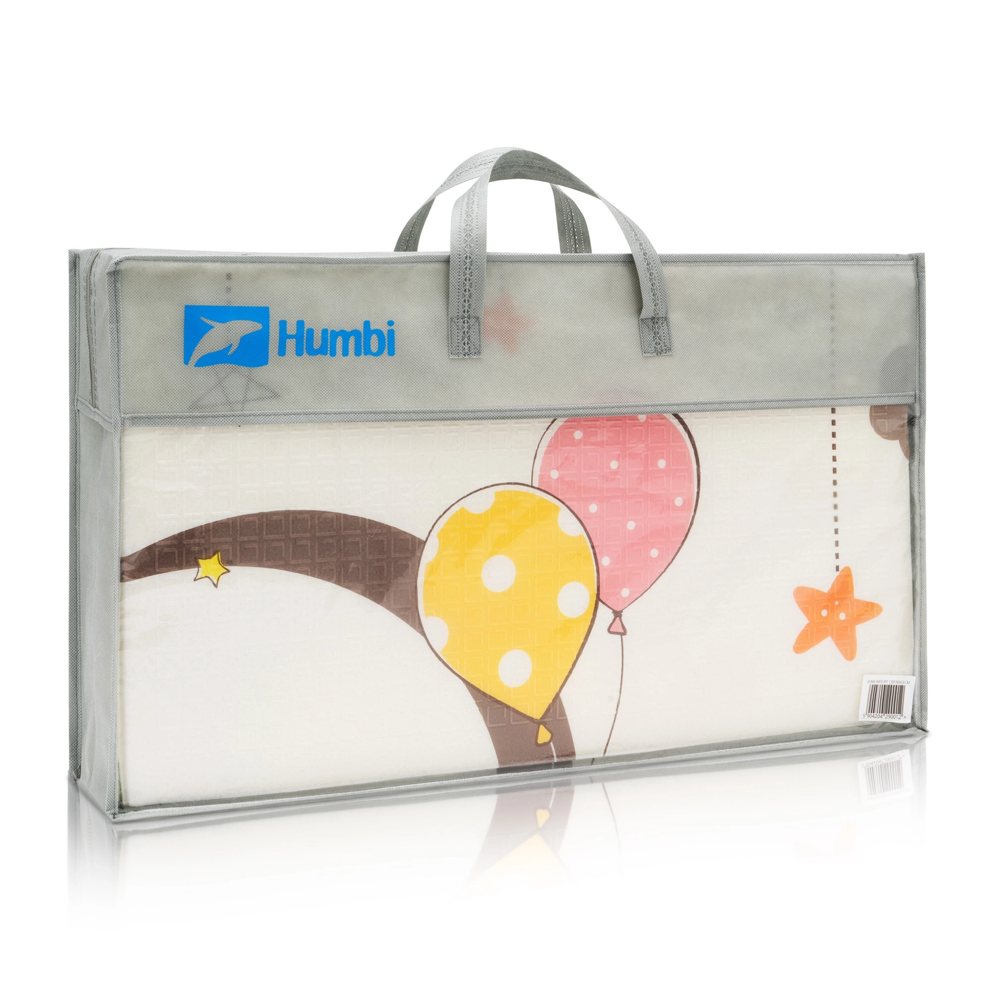 Veľkoformátová hracia podložka HUMBI z prémiovej peny XPE vytvára pohodlné a hygienické miesto pre bábätká aj väčšie deti. Vďaka hrúbke 0,8 cm skvele tlmí nárazy, izoluje od chladu a jej jemne reliéfny, protišmykový povrch podporuje bezpečný nácvik lezenia a chôdze. Vďaka obojstrannému dizajnu s roztomilými motívmi zvieratiek, domčekov a čísel ľahko oživí každú detskú izbu aj obývačku.