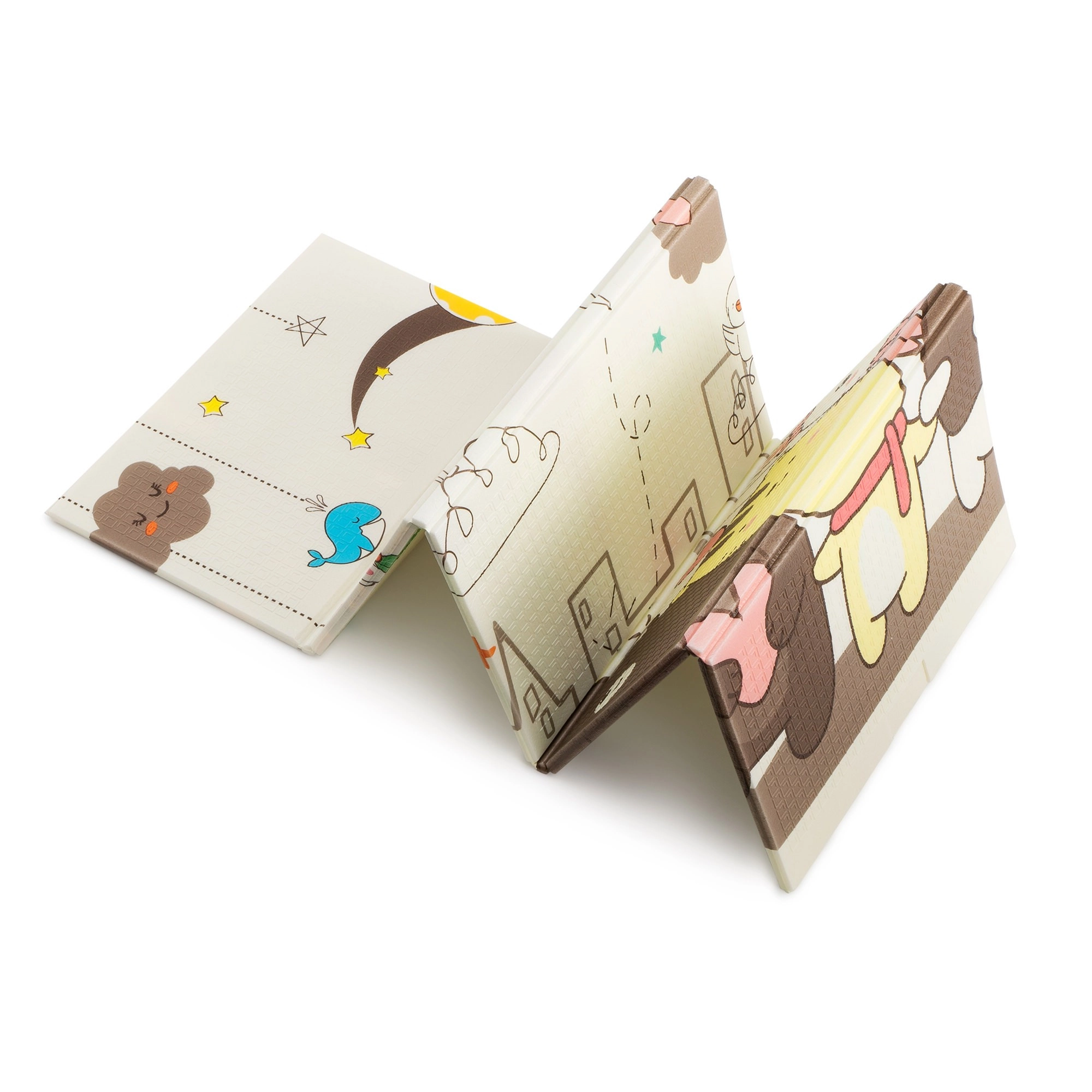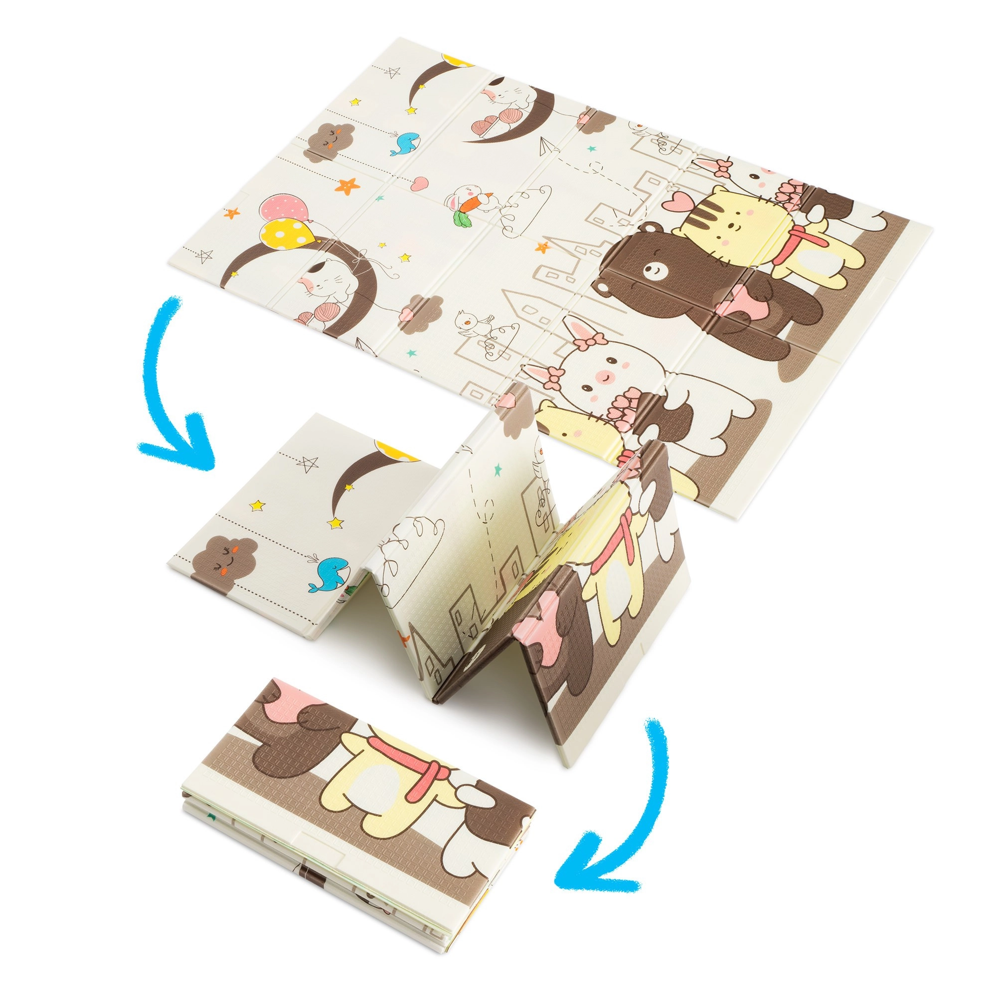 Podložku zložíte počas pár sekúnd do kompaktných panelov. Súčasťou je taška na zips s ušami, takže ju vezmete pohodlne do parku, na piknik aj na cesty.