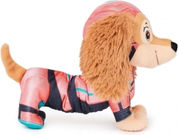 Plyšová fena Liberty v oranžovo‑tyrkysovom oblečku má vyšívané detaily, mäkkučké uši a kvalitné šitie. Prémiové materiály zaručujú dlhú životnosť aj bezpečnosť pri detskej hre.