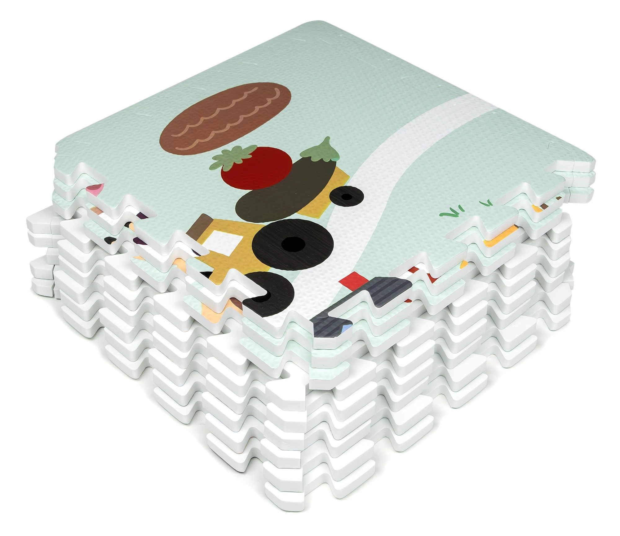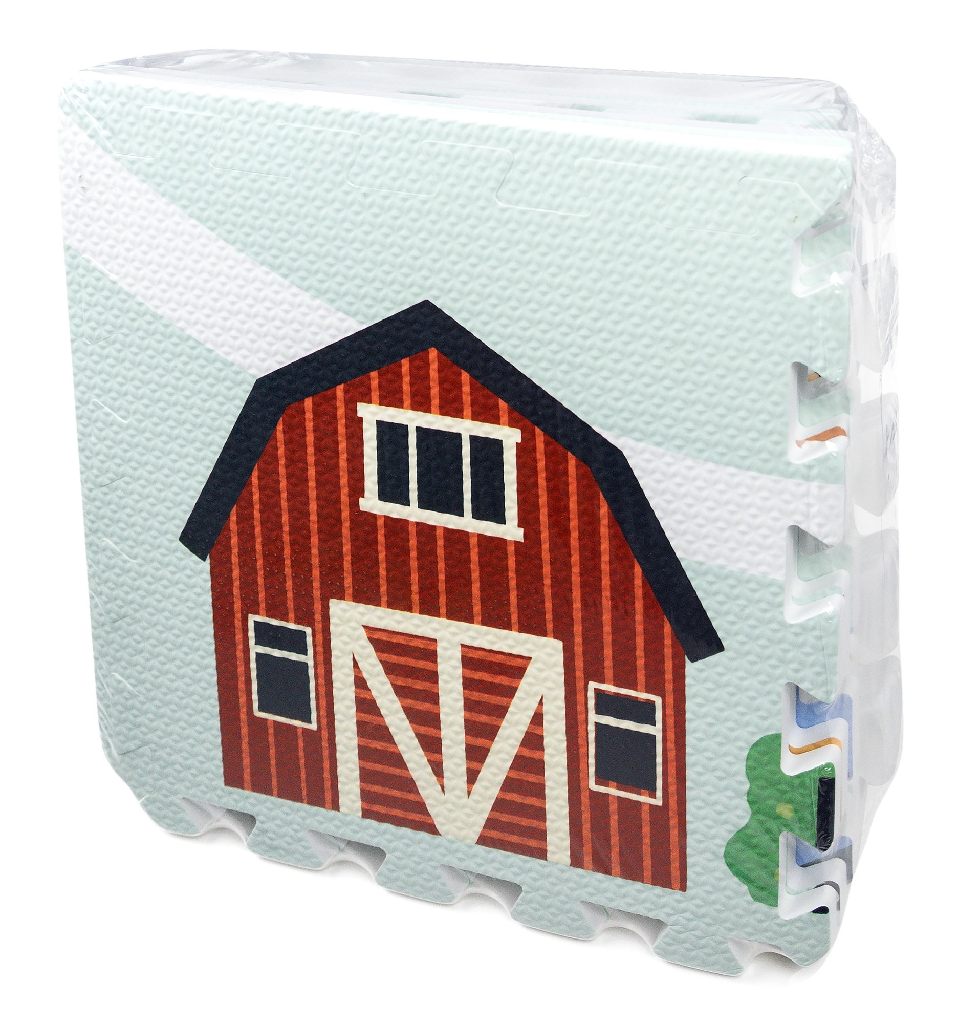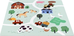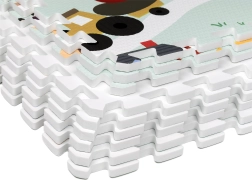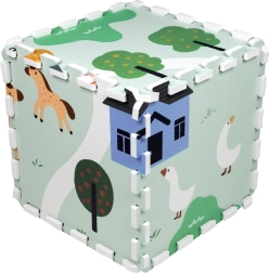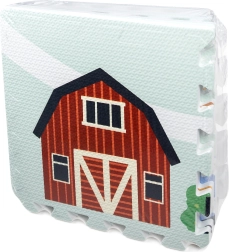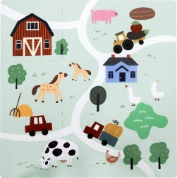 Mäkká a bezpečná detská podložka z EVA peny tvorená 9 dielmi s rozmerom 30 × 30 cm so vzorom farmy. Poskytuje izoláciu od chladu, tlmenie pádov a protišmykový povrch. Je vodeodolná, ľahko sa čistí a vďaka okrajom možno z dielov skladať väčšiu plochu alebo 3D tvary (napr. kocku). Vhodná od narodenia, bez ftalátov, formamidu, PVC a BPA, spĺňa EN 71 a REACH.