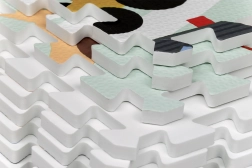 Podložka je vyrobená z elastickej EVA peny bez škodlivín (bez ftalátov, formamidu, PVC a BPA). Vodeodolný povrch stačí utrieť vlhkou handričkou – nepohlcuje prach ani roztoče, je preto ideálny pre alergikov. Vďaka hrúbke 1 cm výborne izoluje od studenej podlahy a tlmí nárazy na tvrdých povrchoch (parkety, dlažba, laminát).