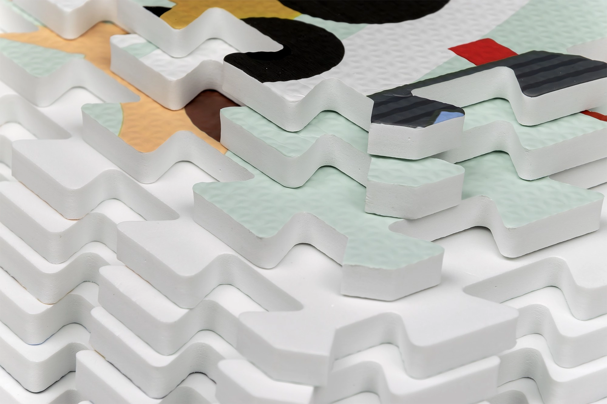 Diely 30 × 30 cm s okrajmi možno spájať do väčšej plochy alebo skladať do 3D tvarov (napr. kocka). Ideálne na prispôsobenie priestoru aj rozvoj kreativity.