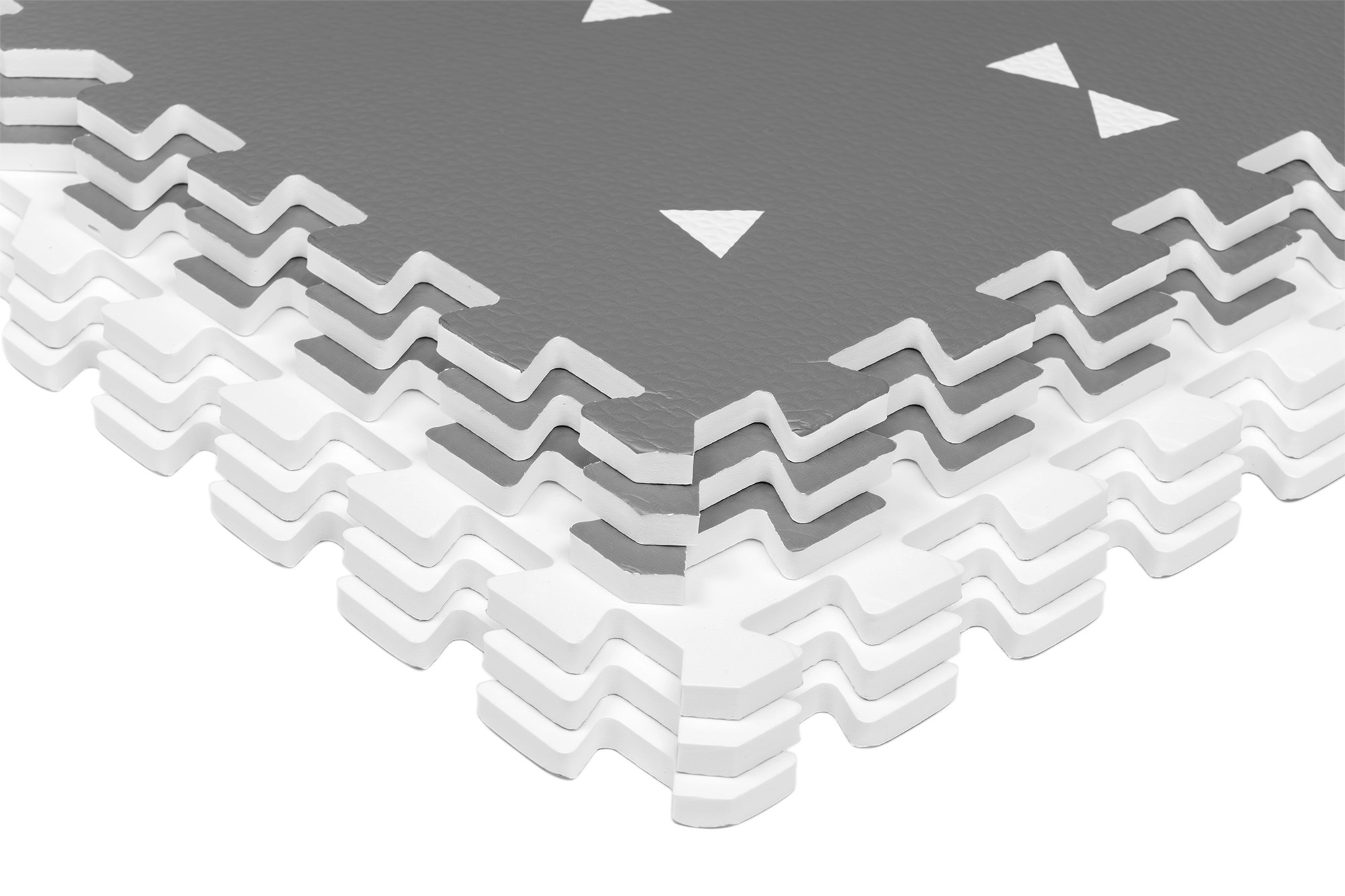 Penová podložka HUMBI vytvára pre bábätká a batoľatá bezpečné miesto na hranie, lezenie a prvé krôčiky. Vďaka hrúbke 1 cm skvele izoluje chlad a pohlcuje nárazy na tvrdých povrchoch ako sú dlažba, parkety či laminát. Decentný sivý dizajn s trojuholníkmi ladí s modernými interiérmi.