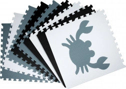 Podložka z elastickej EVA peny je bez ftalátov, formamidu, BPA a PVC, spĺňa EN 71 a REACH a nesie označenie CE. Vďaka hrúbke 1 cm výborne izoluje od chladu a amortizuje pády, takže je ideálna na parkety, dlažbu aj laminát. Vodoodolný a ľahko umývateľný povrch nezadržiava prach ani roztoče – stačí zotrieť vlhkou handričkou.