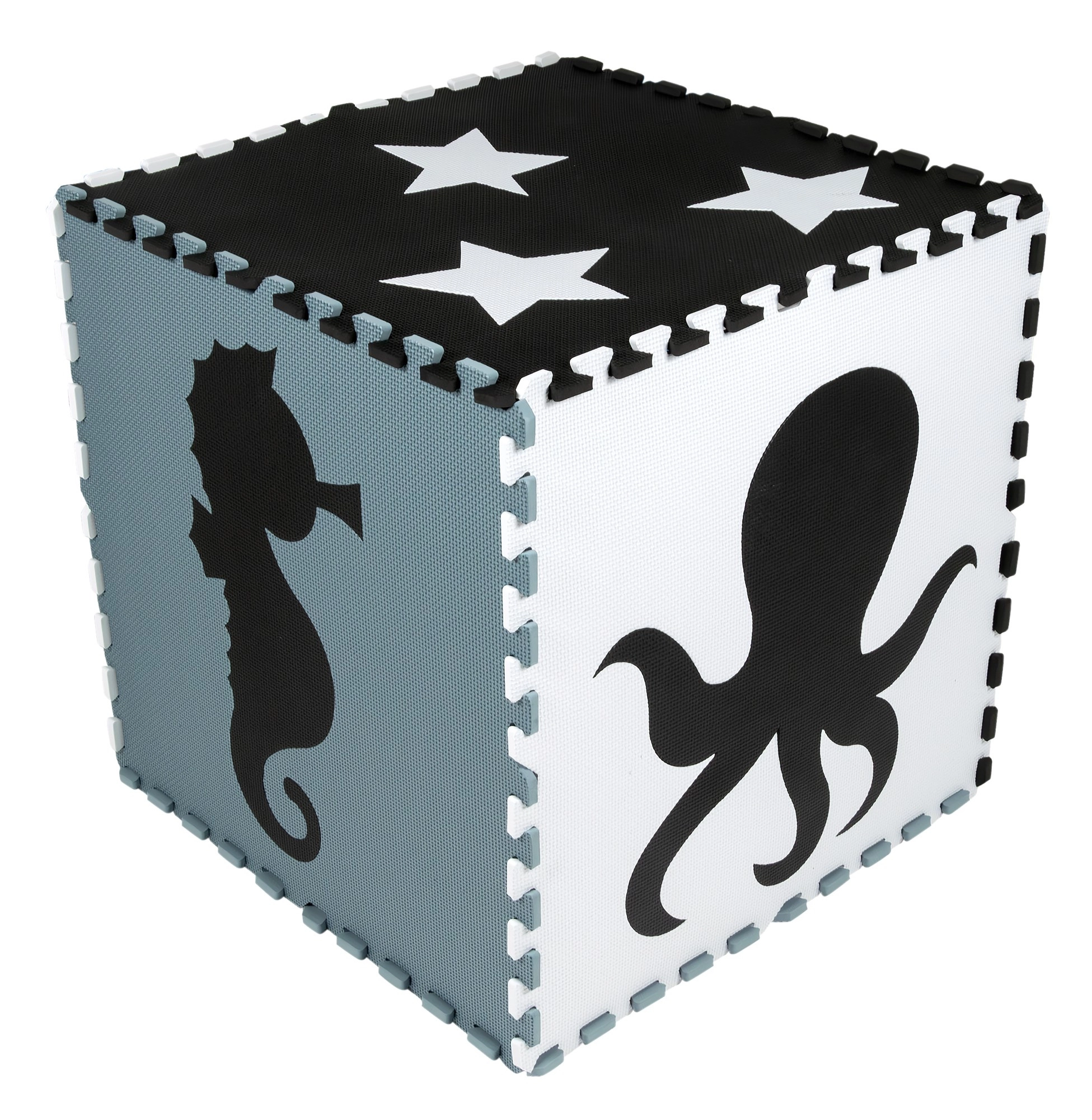 Neutrálne, pokojné farby nerušia deti pri hre a ľahko zapadnú do každého interiéru – detskej izby, herne aj škôlky. Vyberateľné stredové diely s tvarmi (morský koník, korytnačka, ryba, medúza, veľryba, chobotnica, delfín, hviezdy a krab) podporujú rozvoj motoriky a učenie zvierat. Diely možno rozširovať (v rámci rovnakého modelu) a skladať do kocky alebo iných 3D tvarov.