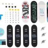 - 1 zložený fingerboard, 3 dosky na zostavenie, 12 koliesok, 6 truckov, 24 skrutiek, 12 matíc, 1 kľúč, 2 nálepky