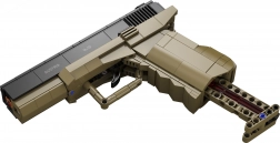 Táto detailná stavebnica zaujme prepracovaným vzhľadom v čierno-hnedom prevedení a šikovnou konštrukciou pre plynulé prehrávanie scenárov. Vďaka pohybovým prvkom vrátane spúšte a záveru získate realistický pocit zo stavania aj hrania. Projektily sa nabíjajú priamo do hlavne a zbraň má vyberateľný zásobník.