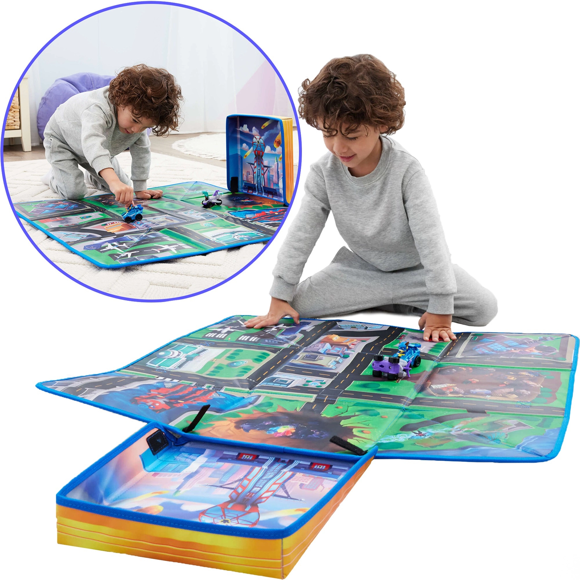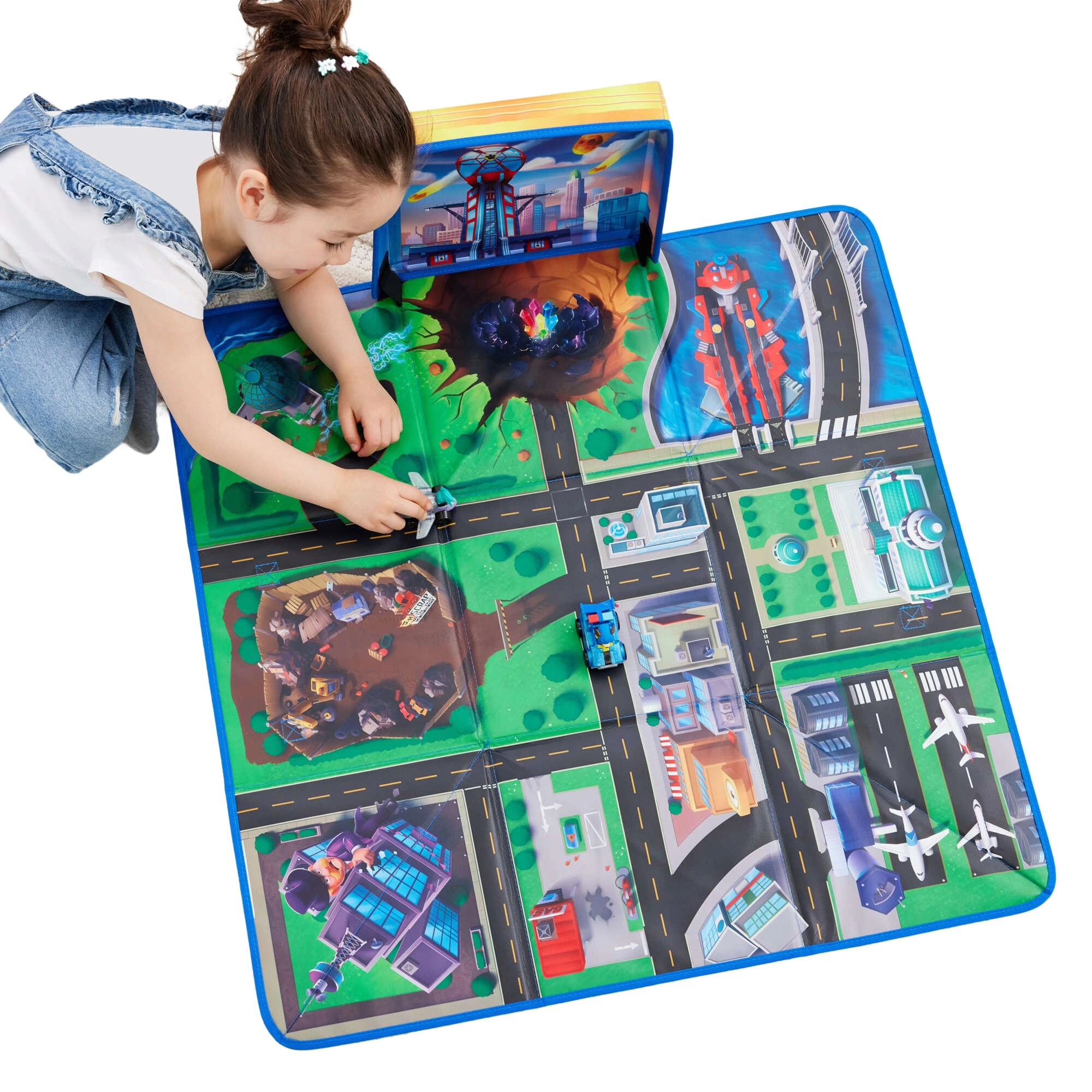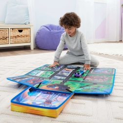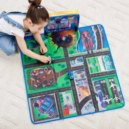 Táto skladacia podložka inšpirovaná filmom PAW Patrol: The Mighty Movie prináša do detskej izby celé Mesto dobrodružstiev – ulice, križovatky, most aj letisko. Povrch je mäkký, farebný a láka k imaginatívnej hre s vozidlami a figúrkami obľúbených hrdinov.