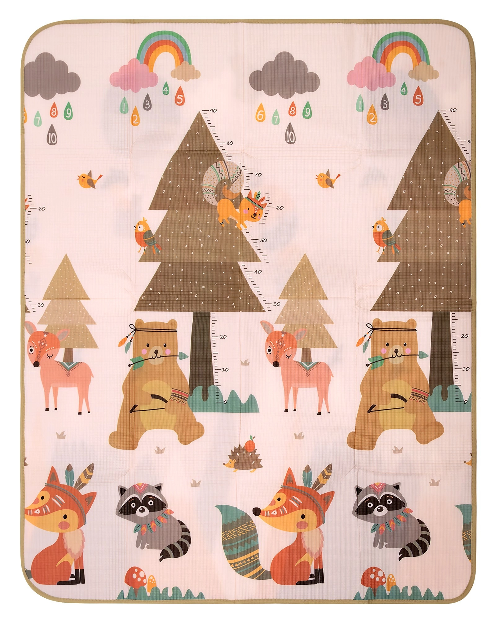 Mäkká a bezpečná podložka pre bábätká a batoľatá od HUMBI ponúka veľkú plochu 150 × 180 × 0,5 cm na hranie, lezenie aj prvé krôčiky. Je obojstranná s roztomilými motívmi zvieratiek, hôr a mierkou rastu, ľahko sa čistí, je vodoodolná a tepelne izoluje od studenej podlahy. Vyrobená z bezpečnej EPE peny bez BPA, PVC, ftalátov a formamidu, spĺňa normy EN71 a vďaka skladacej konštrukcii a prepravnej taške sa pohodlne prenáša aj skladuje.