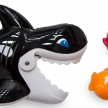 Stlačte spúšť na rukoväti a papuľa kosatky sa otvorí, aby „prehltla“ plávajúce rybky. Ideálne na tréning koordinácie a presnosti.