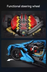 Tento veľkoformátový model V12 hypercaru zo série CADA Master poteší všetkých fanúšikov technických stavebníc. Pri stavbe si užijete premyslené mechanické prvky, ktoré podčiarkujú realistický zážitok: od funkčného riadenia cez otváracie dvere až po autentické detaily kokpitu. Vďaka elegantnej modrej karosérii sa stane výraznou ozdobou každej zbierky.