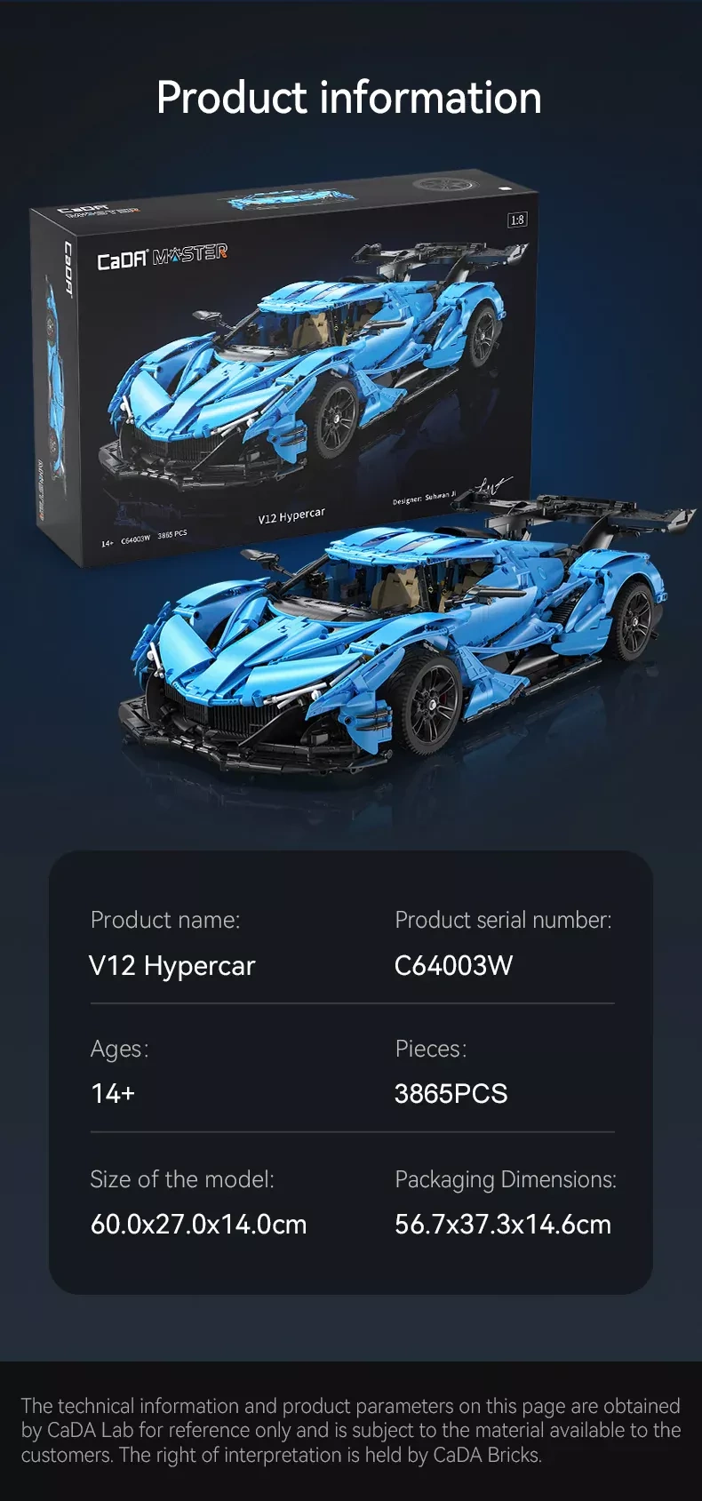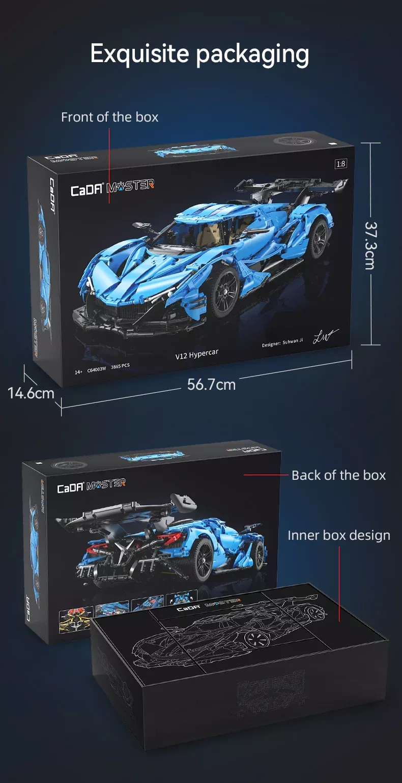 Stavebnica CADA Master modrý V12 hypercar 1:8 (3865 dielikov)