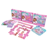 Zábavná sada hier Gabin mačací domček 3v1 prináša domino, pop-up stolovú hru a jumbo karty v jednom balení. Ideálna pre deti od 4 rokov, rozvíja pamäť, sústredenie aj koordináciu a ponúka farebné motívy obľúbených hrdinov z GABBY’S DOLLHOUSE.
