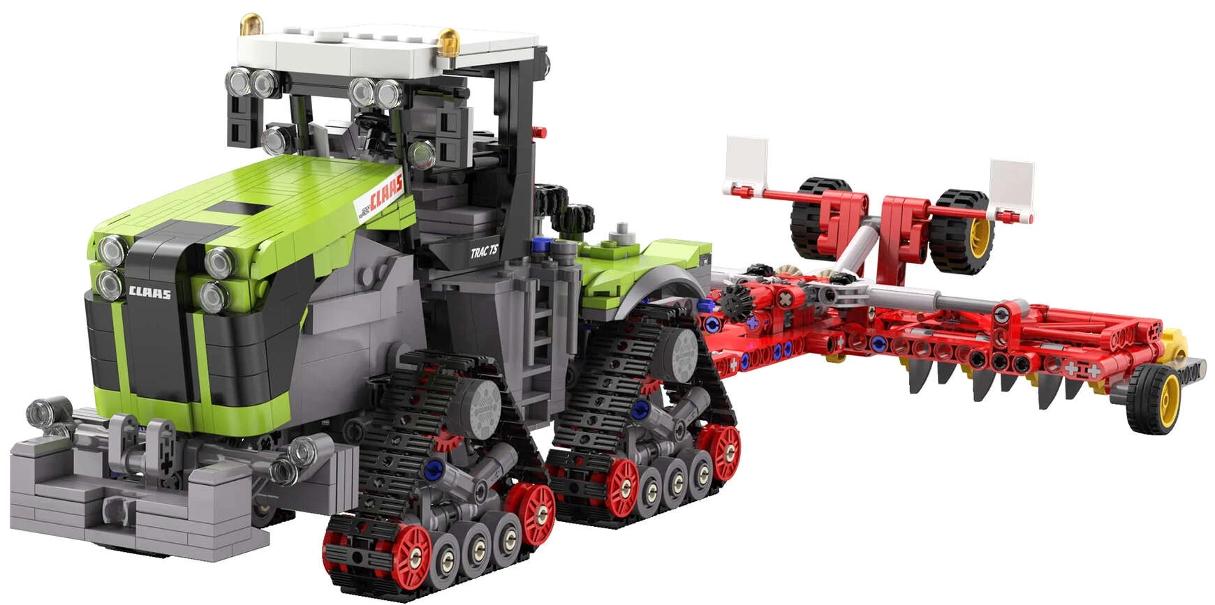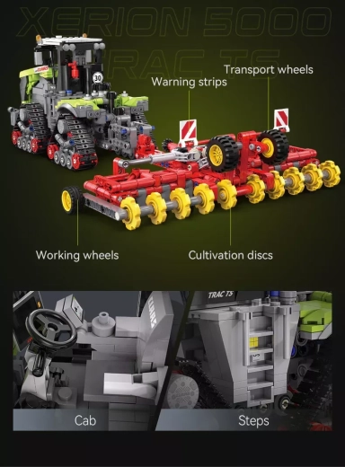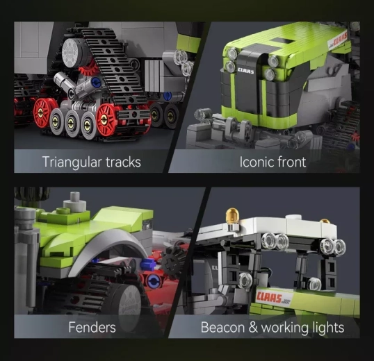 Tento pôsobivý model prináša realistické spracovanie traktora CLAAS s trojuholníkovým usporiadaním pásov, premyslenými mechanickými funkciami a bohatými detailmi exteriéru aj interiéru. Vďaka jasnému návodu si stavbu užijú aj mladší stavitelia s dohľadom dospelých.