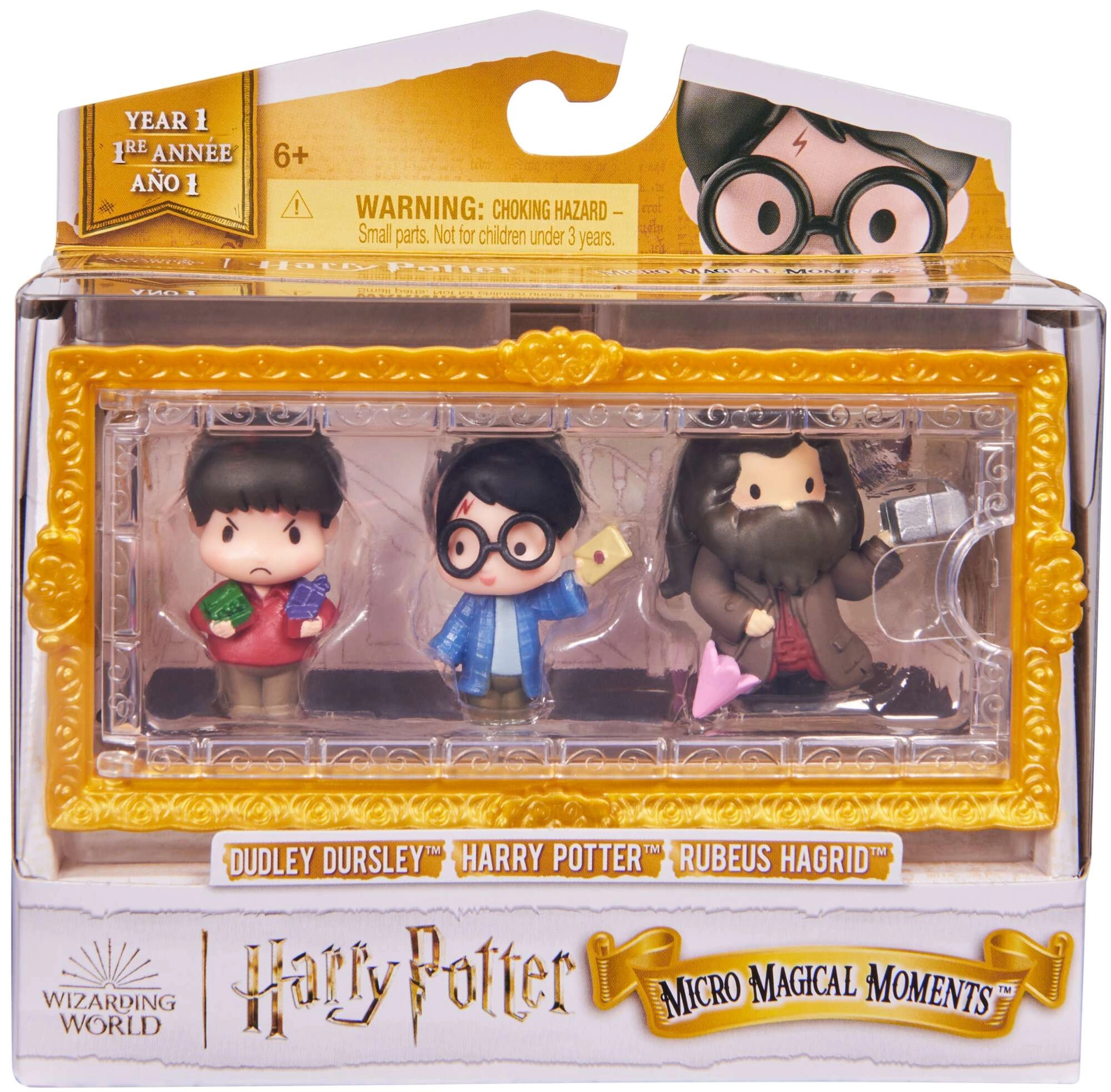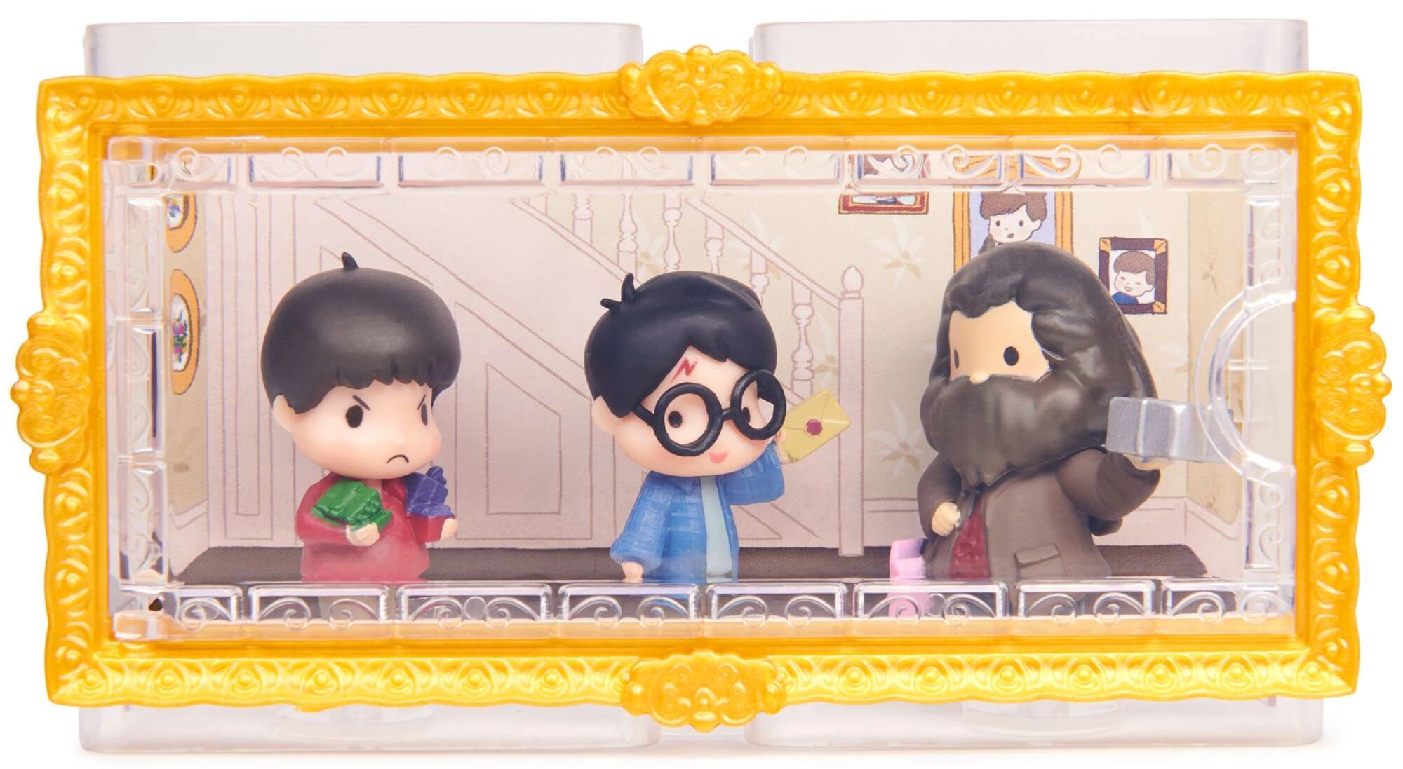 Objavte čaro série Micro Magical Moments a vytvorte si vlastnú miniatúrnu diorámu z Rokfortu. Figúrky Harry Potter, Rubeus Hagrid a Dudley Dursley sú umiestnené v praktickom puzdre s priehľadným okienkom, ktoré ich chráni a zároveň štýlovo vystavuje. Každá postavička má ikonické doplnky – Hagrid krabičku a dáždnik, Harry list a Dudley svoje hračky.