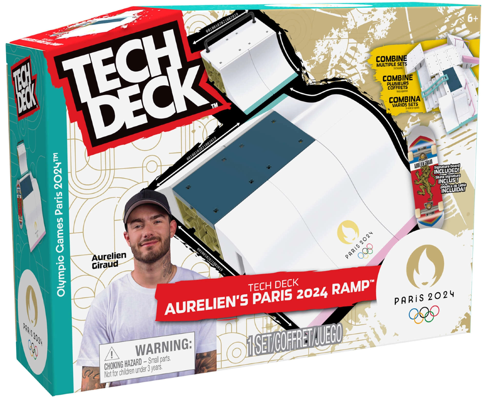 Zažite atmosféru olympijského skateboardingu s exkluzívnym setom Tech Deck Aurelien Giraud Paris 2024. Robustné plastové diely, štvrťkruhové rádiusy, grind rail aj platformy umožnia plynulé line kombinácie, ollie, grindy aj preskoky – to všetko na detailne spracovanej mini doske.