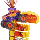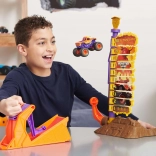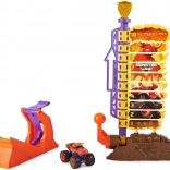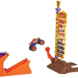 Postavte odpaľovač, zamerajte a vystreľte svoj truck EL TORO LOCO do výšky. Skórovacia veža s očíslovanými úrovňami ukáže, ako vysoko ste doleteli – dostaňte sa až na vrchol a odmení vás efektný „ohňostroj“. Vďaka 5 nastaviteľným uhlom odpaľovača ľahko prepnete medzi výškou a diaľkou skoku a zlepšíte svoje výsledky.