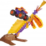 Kultový truck s veľkými kolesami, vysokým podvozkom a typickými „rohmi“ v oranžovo‑žltom dizajne. Pripravený na tvrdé pristátia a ďalší pokus.