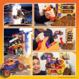 Set je ideálny na samostatnú hru aj súťaže s kamarátmi. Premyslená konštrukcia s pevnou základňou v štýle „dirt“ trate, výrazné farby a autentické Monster Jam grafiky podčiarkujú realistický zážitok. Truck v mierke 1:64 s veľkými pneumatikami a vysokým podvozkom hravo zvláda pristátia a ďalší nájazd.
