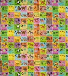 Jedna strana učí nemeckú abecedu so zvieratkami, druhá prináša hravú scenériu vidieka. Zábava a učenie v jednom.