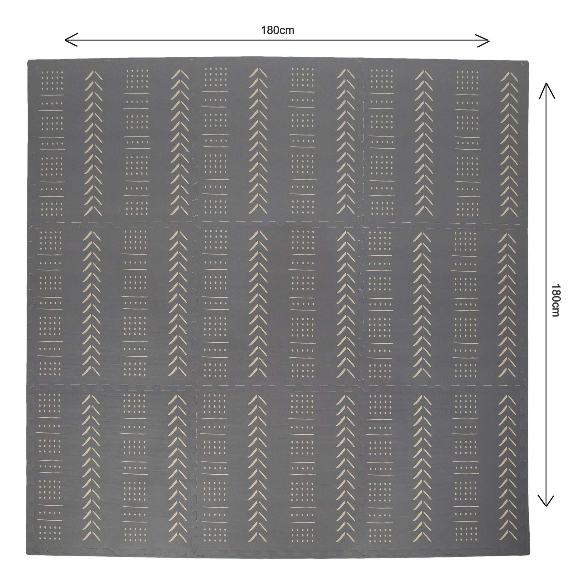 Univerzálna penová podložka z pružnej EVA peny pre deti aj cvičenie. Sada 9 prepojiteľných dielov s ukončeniami vytvorí plochu 180 × 180 cm. Izoluje od chladu, tlmí nárazy, je vodoodolná a ľahko sa čistí vlhkou handričkou. Bezpečná pre deti, bez BPA, ftalátov a formamidu.