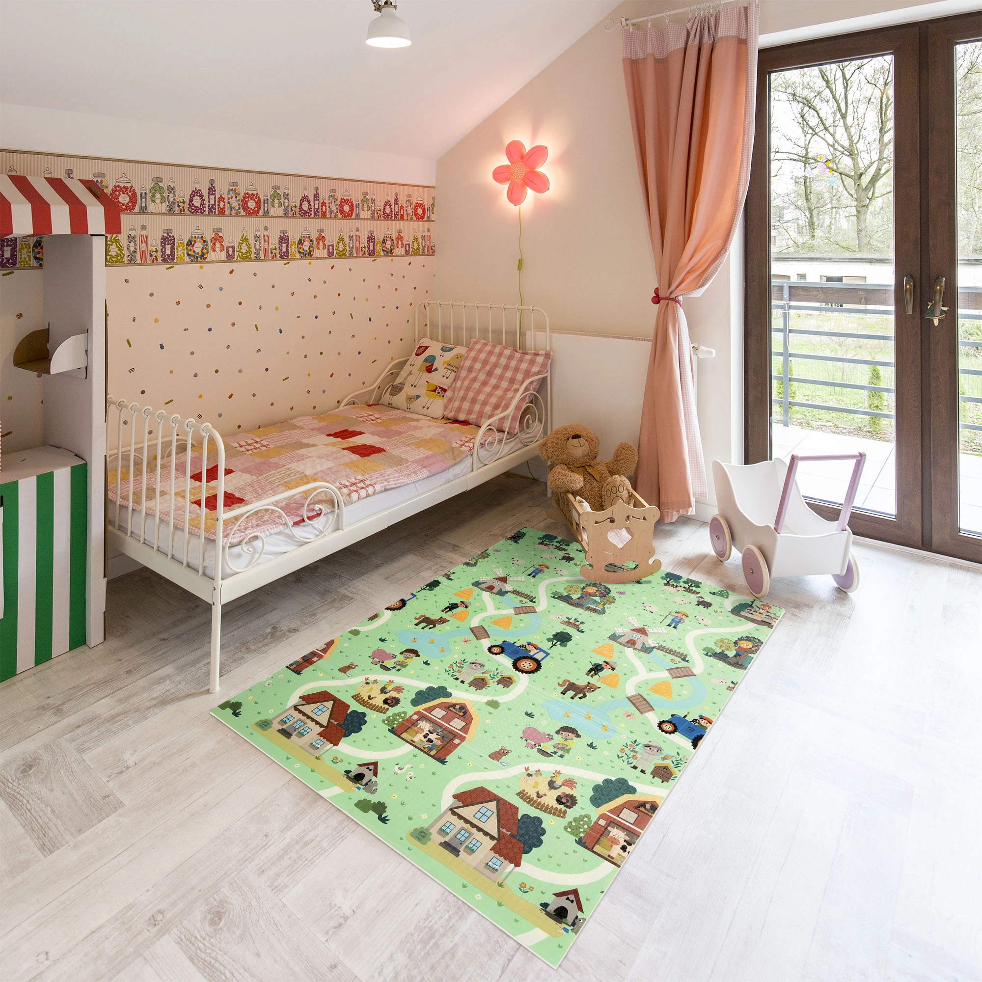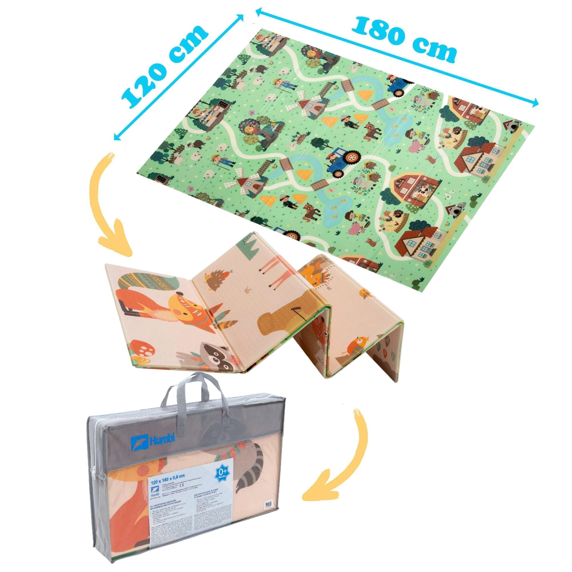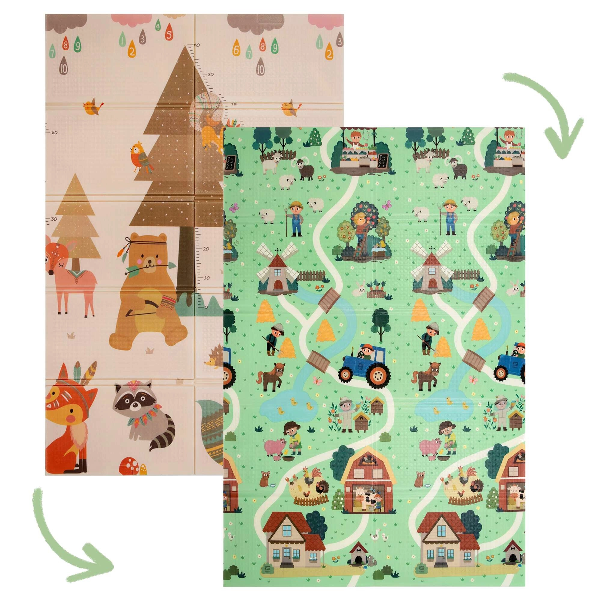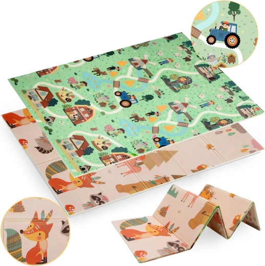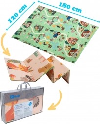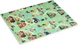 Jedna strana zobrazuje lesné zvieratká, druhá dedinu s cestami pre autíčka. Striedajte motívy podľa nálady a podporujte fantáziu aj zmyslové vnímanie.