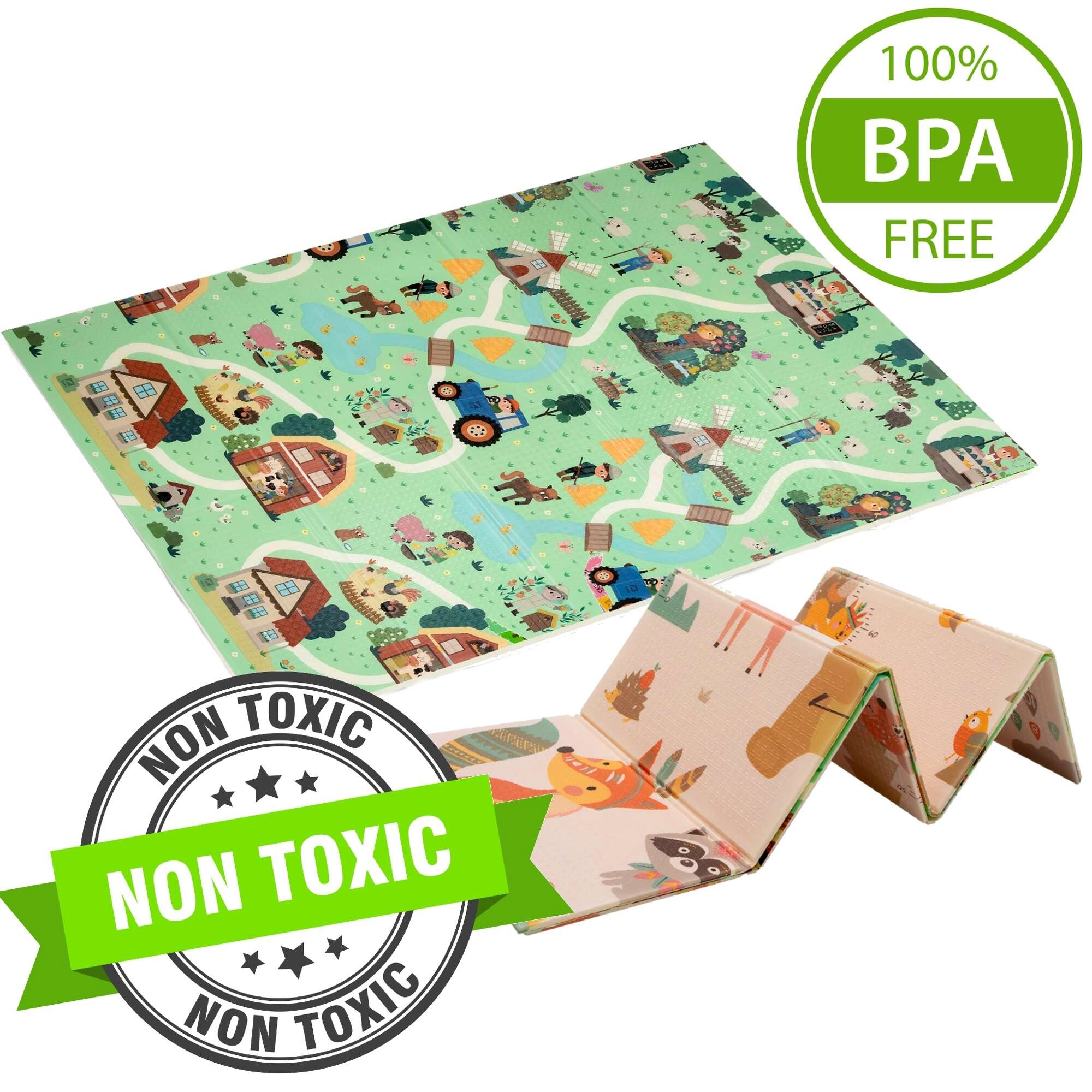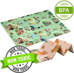 Prémiová pena XPE je bez zápachu, netoxická a odolná. Vďaka hrúbke 0,8 cm výborne izoluje od chladu a poskytuje komfortné polstrovanie pri plazení aj prvých krôčikoch. Obojstranná potlač podporuje zmyslový rozvoj a podnecuje kreatívnu hru s autíčkami po cestách aj spoznávanie zvieratiek.
