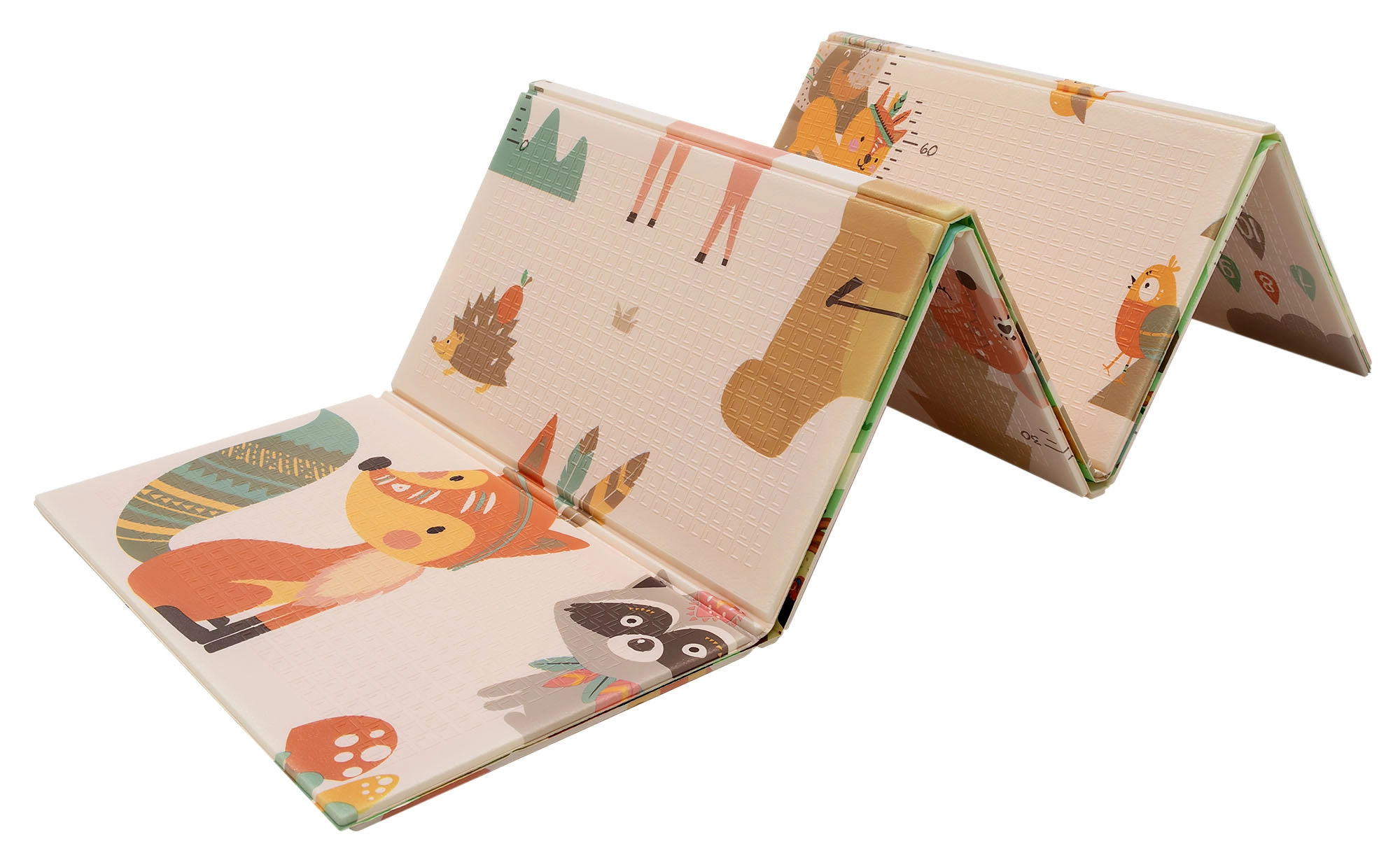 Podložka je rýchlo skladacia do akordeónového tvaru, takže ju ľahko uložíte pod posteľ alebo postavíte za nábytok. Vodoodolný a ľahko umývateľný povrch stačí utrieť vlhkou handričkou; jemná protišmyková textúra zvyšuje stabilitu a bezpečie. Súčasťou je zipsová taška s uškom na pohodlné prenášanie domov, na terasu, piknik či na cesty.