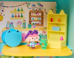 Vstúpte do mačacieho sveta s hernou sadou inšpirovanou obľúbeným seriálom GABBY’S DOLLHOUSE. Set „Cat-Terrific Celebration“ prináša figúrku Tekturka s pohyblivou hlavou a tematické doplnky, ktoré deťom umožnia znovu prežiť scény zo seriálu alebo si vymýšľať vlastné dobrodružstvá. Odolné materiály a detailné prevedenie zaručujú dlhú životnosť aj pri každodennej hre.